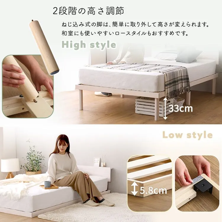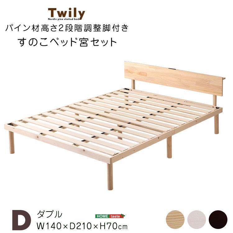 すのこベッド 宮棚付き パイン材 2段階調整 ベット下収納 ダブル