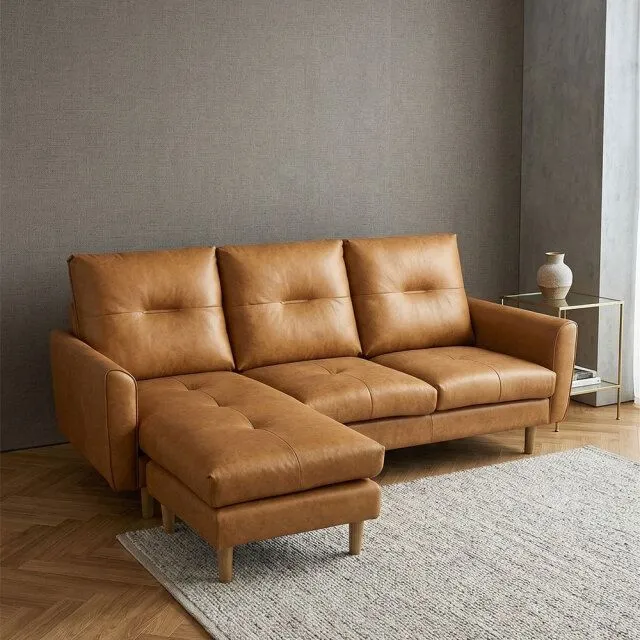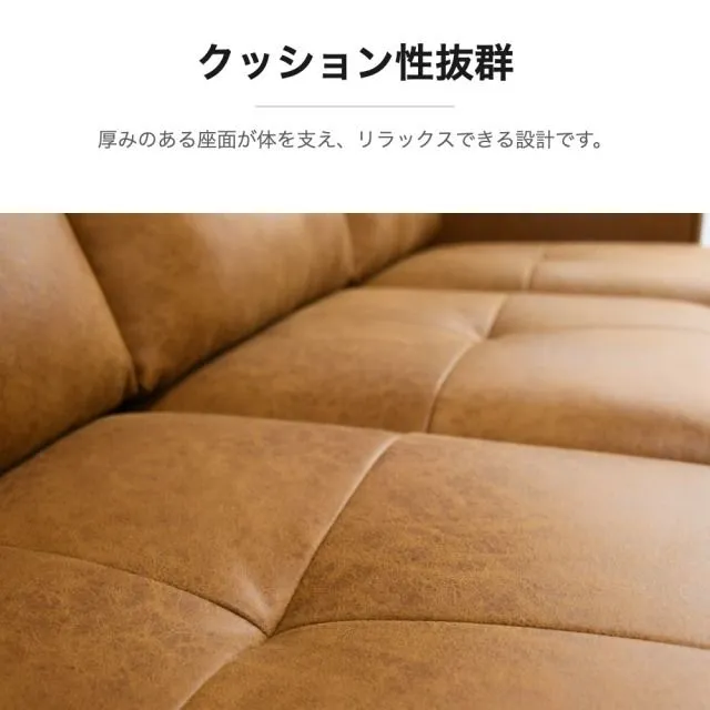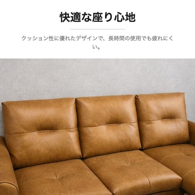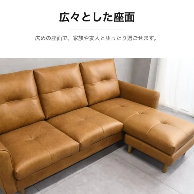 高級感のあるレザーファブリックを使用した、3人掛けL字カウチソファ。