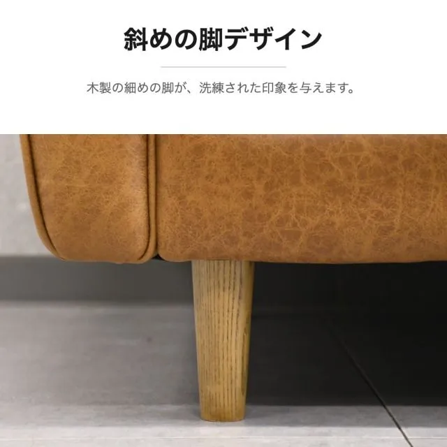 カウチソファ 3人掛け L字ソファ レザーファブリック 幅196cm 木製脚 おしゃれ 高級感 モダン リビング用 コーナーソファ 左右入替可