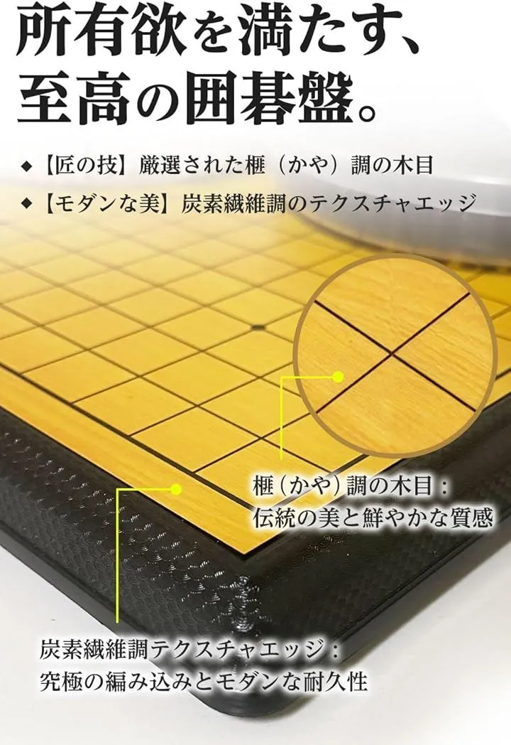 「届いてすぐに盤上の悦びを」「黒181個、白180個の計361個の碁石」と専用の保管ケースをすべて同梱。