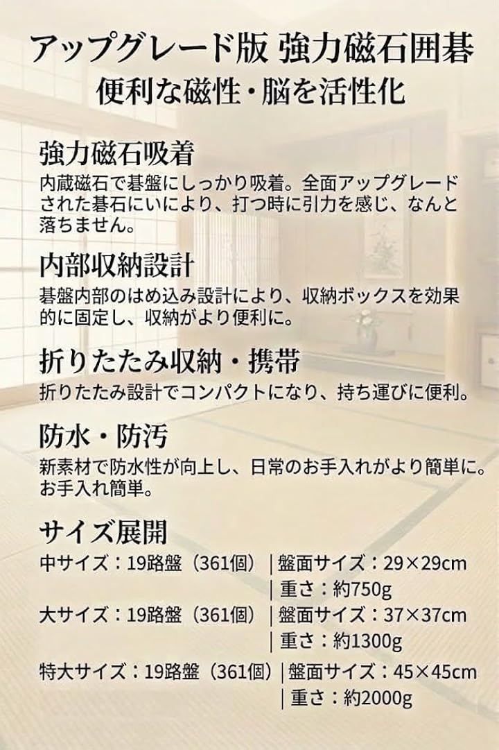 ARCMAX 囲碁 ポータブル マグネット式 碁石361個 防水 囲碁盤 19路盤 碁石ケース付き 折りたたみ 携帯 (大サイズ(37cm))