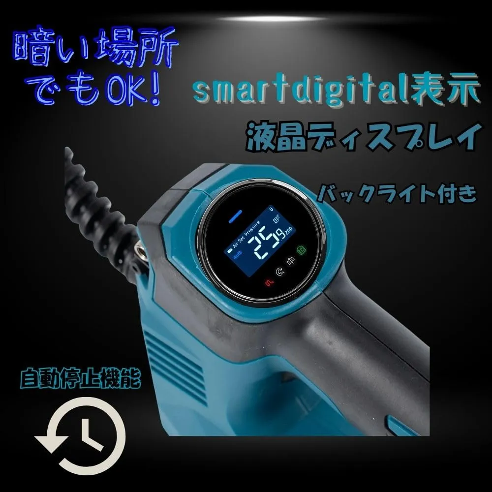 【スマートデジタル表示&自動停止機能】LCDディスプレイでリアルタイムの空気圧・設定圧・バッテリー残量を表示。設定した空気圧に達すると自動停止するため、空気の入れすぎを防止し安全に作業できます。夜間でも見やすいバックライト付きで、暗い場所でも快適に使用可能です。