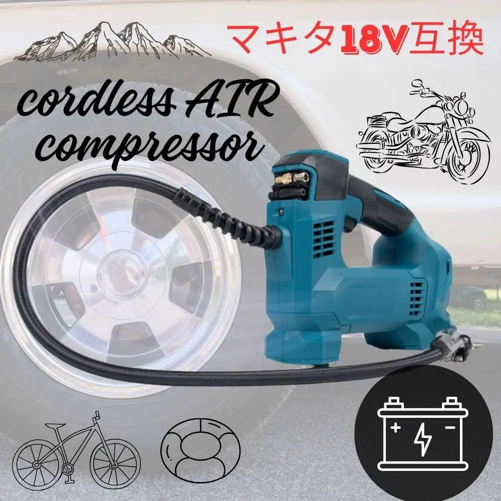 電動エアコンプレッサー マキタ互換 18V対応 急速充填 LEDライト付 車 バイク 自転車対応 本体のみ バッテリー・充電器別売