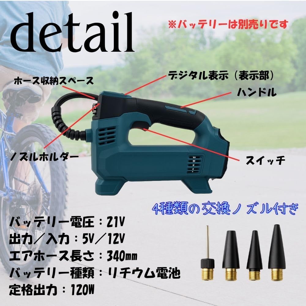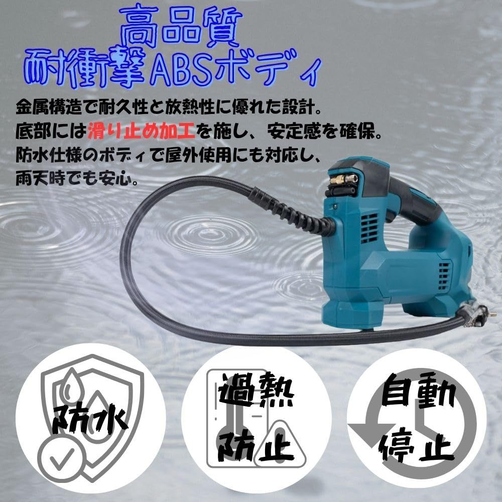 【マキタ18Vバッテリー対応・どこでも使えるコードレス設計】マキタ18Vリチウムイオンバッテリー(BL1830/BL1840/BL1850/BL1860など)に対応。電源がない場所でも使用でき、車・バイク・自転車・浮き輪など幅広い用途に対応。持ち運び便利なコードレス仕様で、旅行やアウトドアにも最適です。
