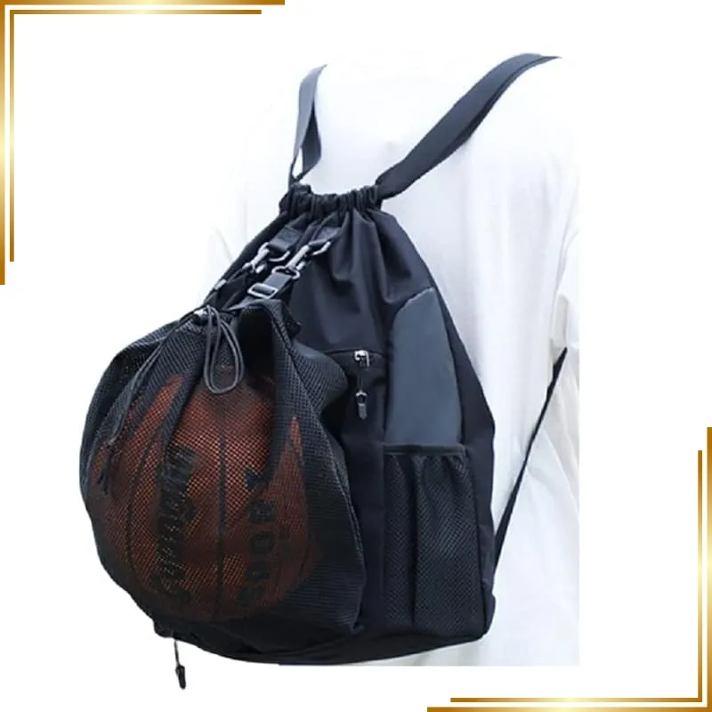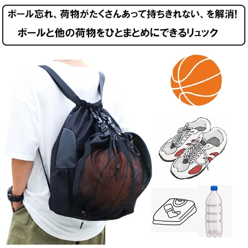 【新品】 [pkpohs] バスケット ボール バッグ リュック ボールバッグ サッカー バスケット ポケット 軽量 メッシュ (ブラック) 1
