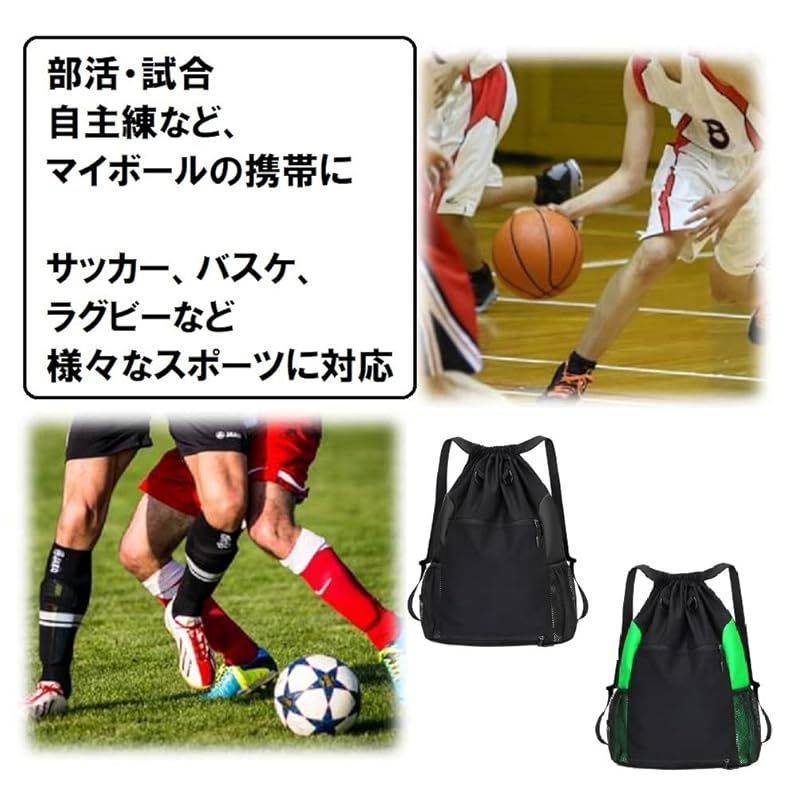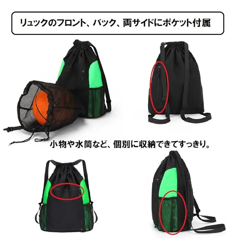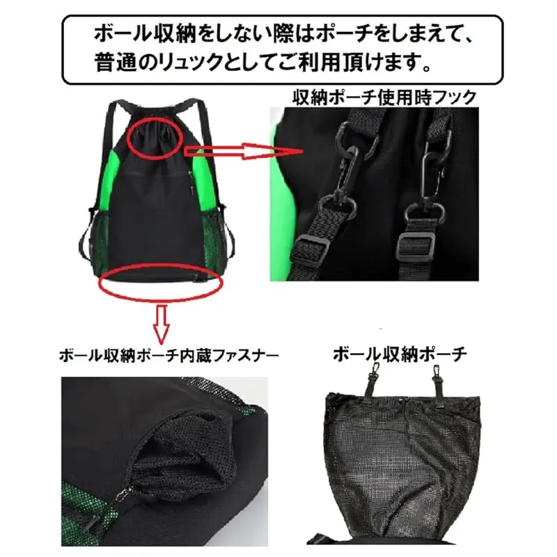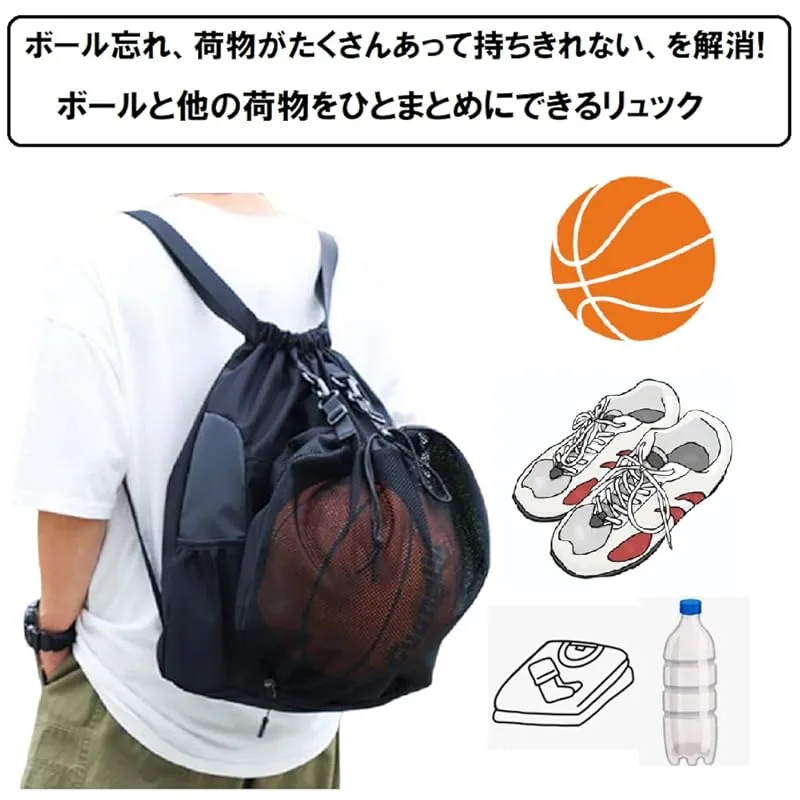 【商品概要】 部活・練習の際のボール忘れ、荷物がたくさんあって持ちきれない、を解消します。 リュックの外側にボールを収納できるメッシュポーチが内蔵されているので、ボールを他の荷物とひとまとめに持ち運びができます。 ボール専用のスペースに収納できるので、ボールの汚れが着替えやタオルなどにつくことがなく、ボールが必要な時にスムーズに出し入れできます。 水筒やマイボトルを収納可能なサイドポケット、小物を収納できるポケット付き。 バッグの中で荷物がごちゃごちゃになりにくく、すっきりとご利用頂けます。 リュック本体の開け閉めは巾着仕様、お子様にも使いやすい仕様です。 ボール用収納ポーチはしまっておけるので、使わない時は通常のリュックサックとしてご利用頂けます。