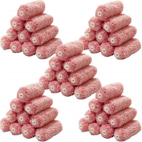 3インチ/11mm/50本 ハケ市 ミニスモール ローラー マイクロファイバー 混毛 レッド 3インチ 11mm 50本 セット 塗装 ペイントローラー