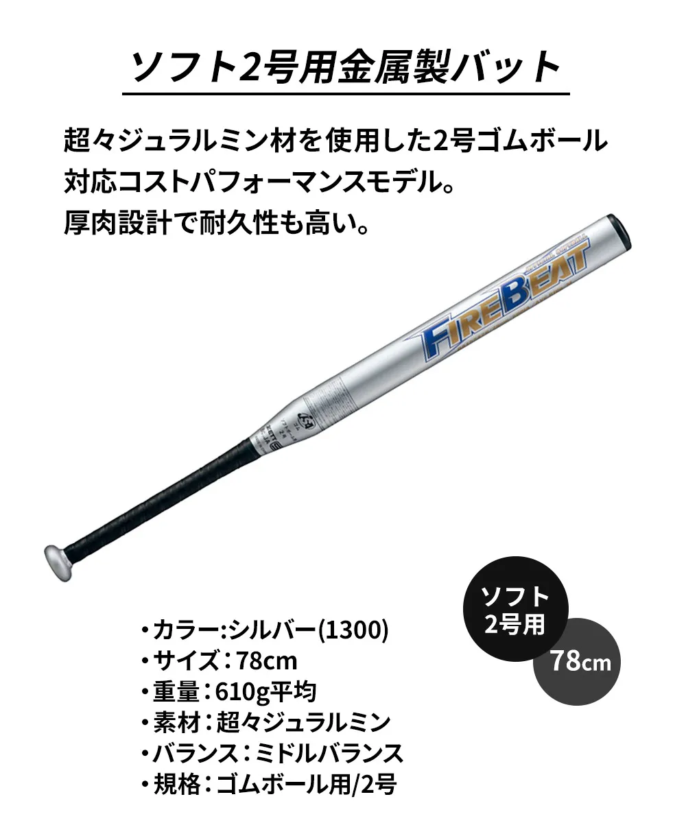 【新品】 ゼット 野球 バット ソフト 2号用 78cm 金属バット ソフトボール ゴムボール対応 小学生 中学生 高校生 学生 部活 クラブチーム 練習 スポーツ FIREBEAT ファイヤービート ZETT ベースボール BAT52428