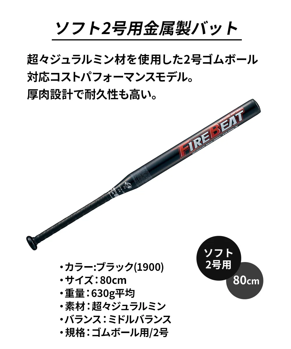 【新品】 ゼット 野球 バット ソフト 2号用 80cm 金属バット ソフトボール ゴムボール対応 小学生 中学生 高校生 学生 部活 クラブチーム 練習 スポーツ FIREBEAT ファイヤービート ZETT ベースボール BAT52430