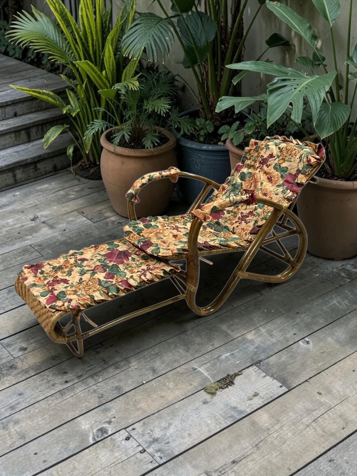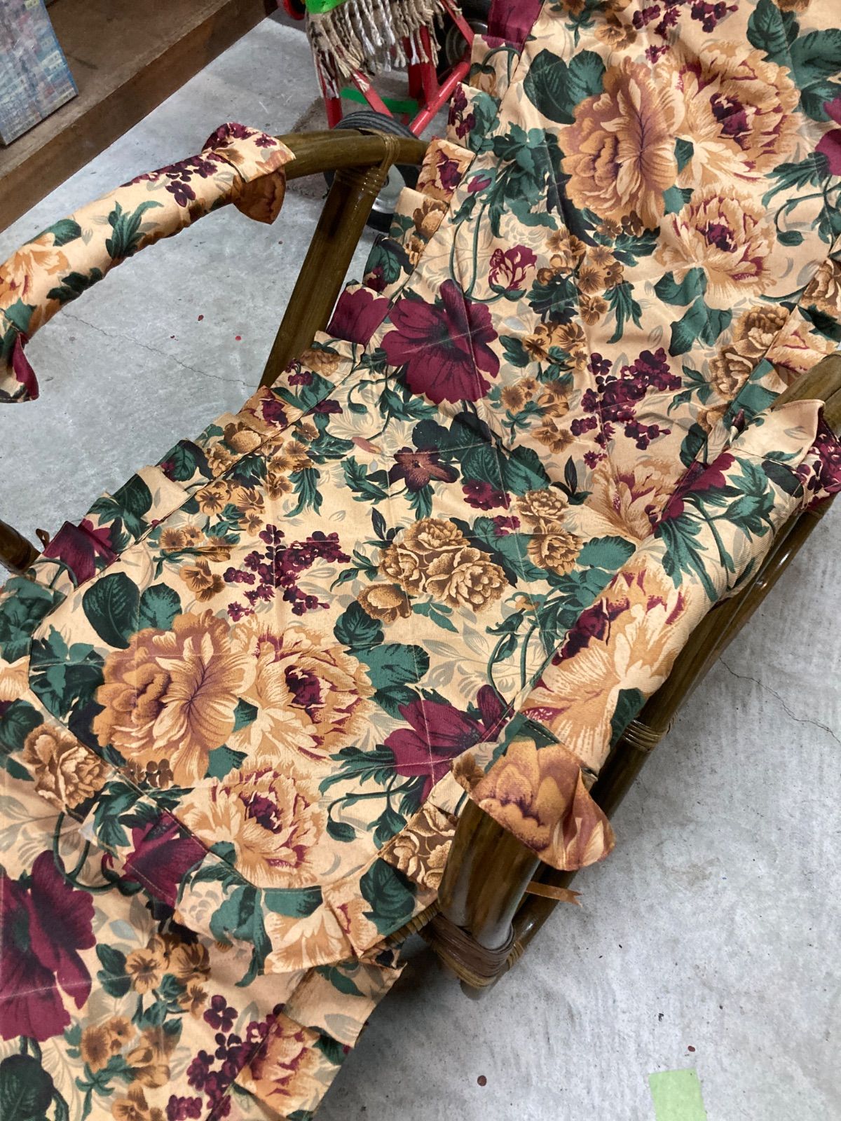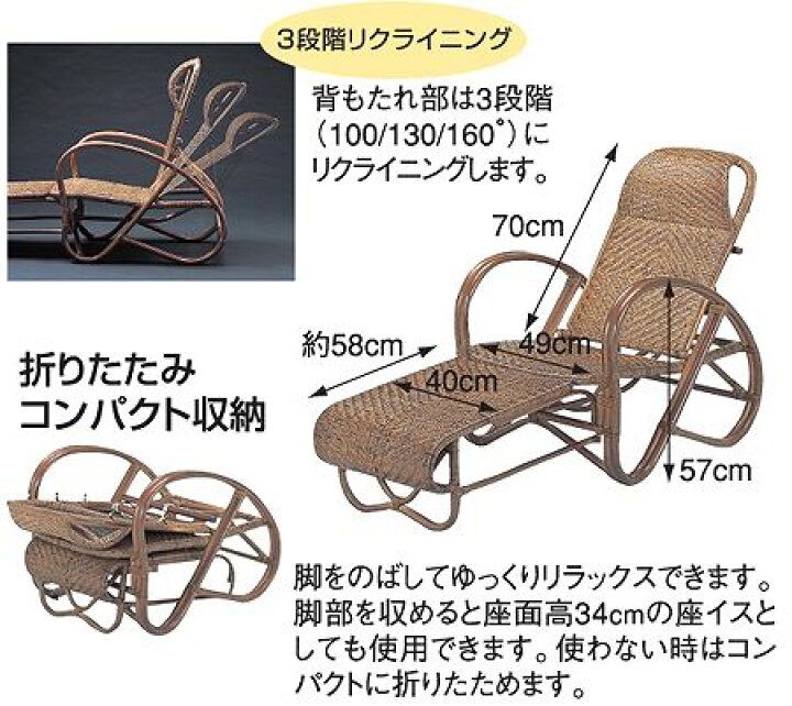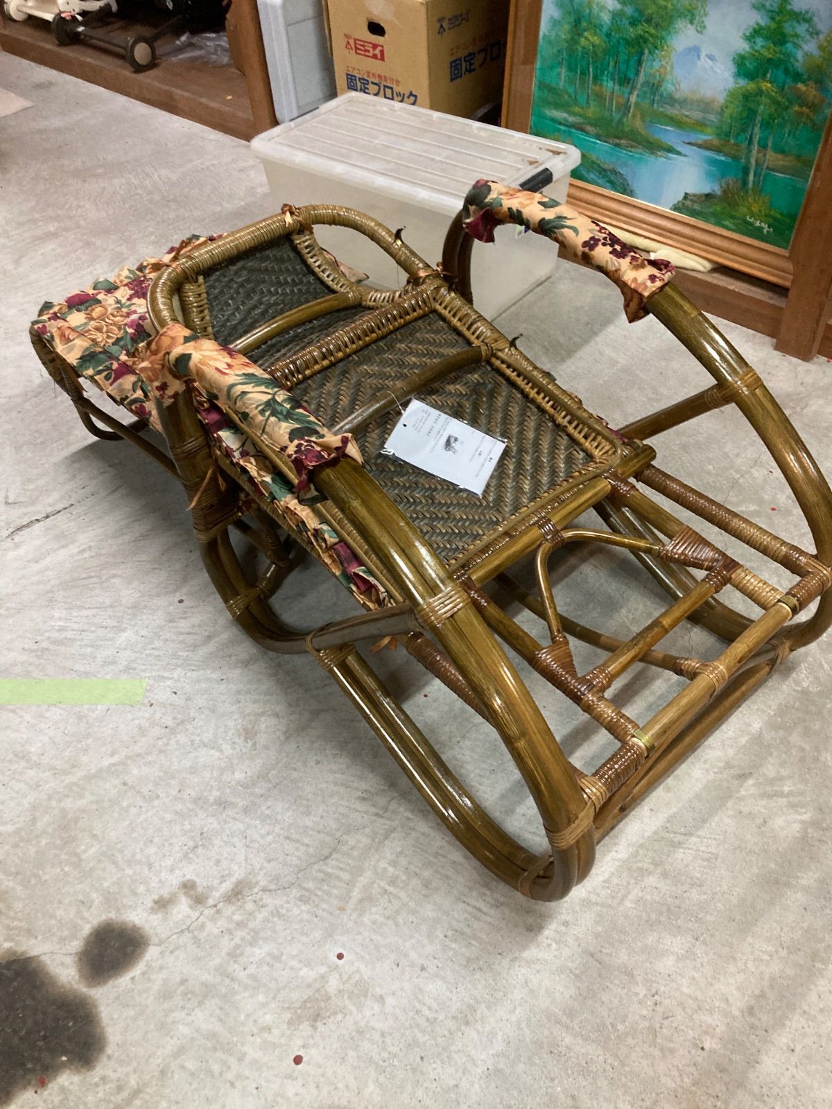 未使用 ラタンチェア 三つ折り寝椅子 カバー付 リクライニングチェア ラタン 籐 ロッキングチェア 籐家具 リクライニングチェア