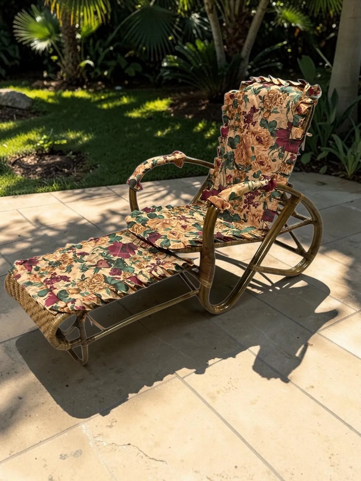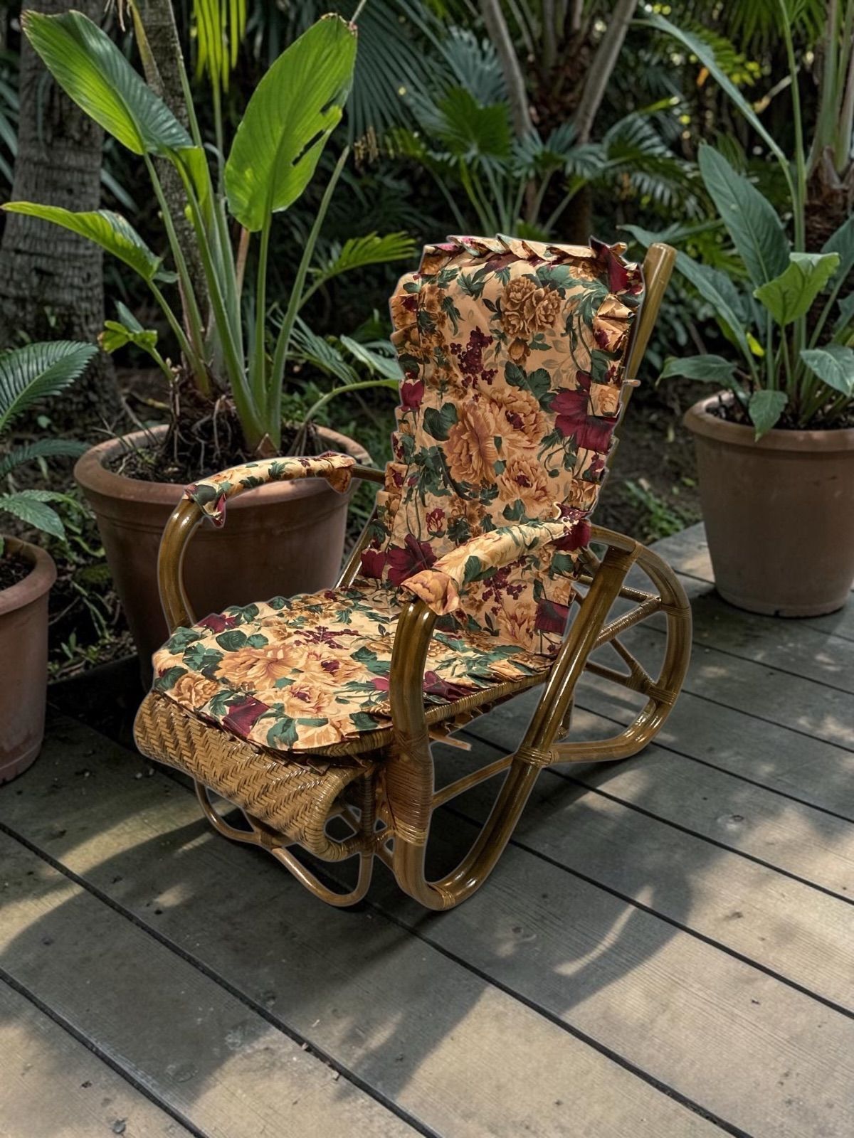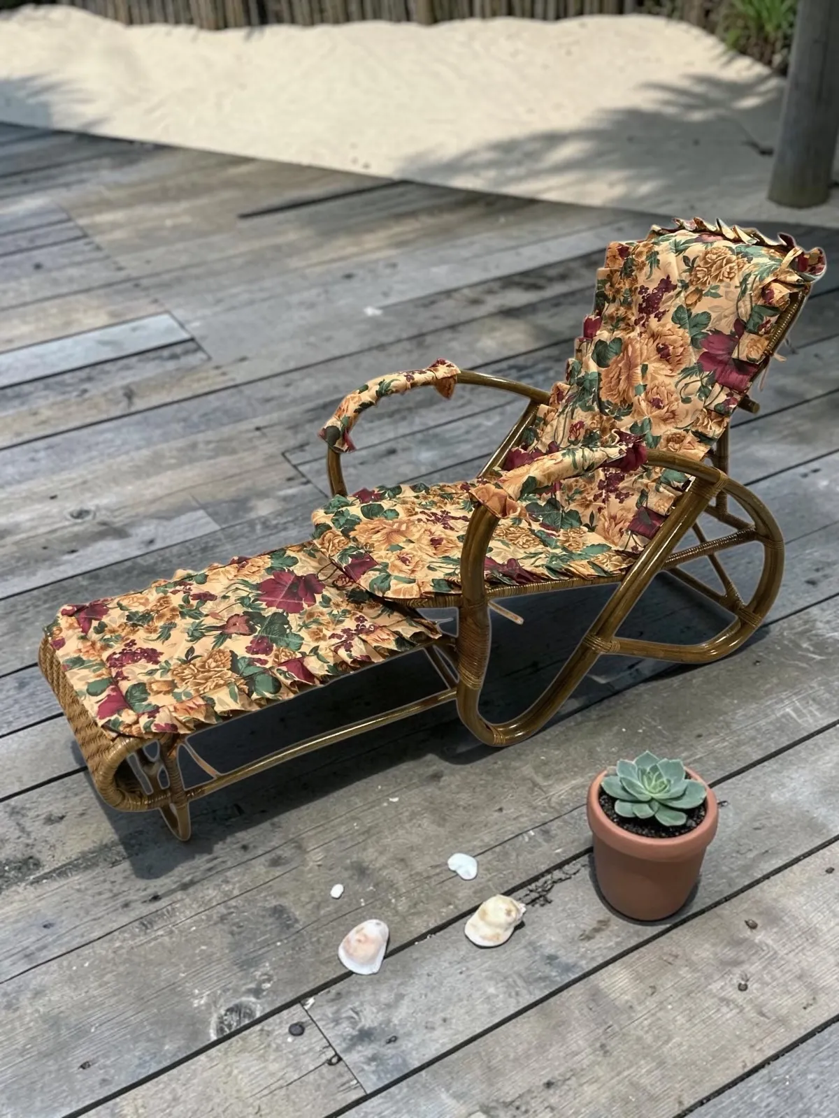 未使用 ラタンチェア 三つ折り寝椅子 カバー付 リクライニングチェア ラタン 籐 ロッキングチェア 籐家具 リクライニングチェア