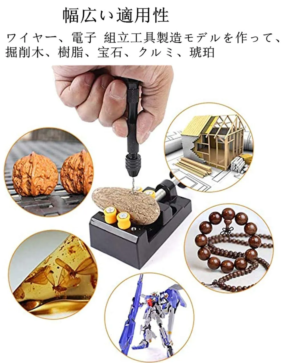 【広い適用性】ワイヤー、電子組立工具製造モデルを作って、掘削木、樹脂、宝石、クルミ、琥珀、蜜蝋 、オリーブの実、ビーズ、DIYまだ趣味の理想的な使用工具です。柔らかい金属も使え、鋼、鉄、石ような非常に硬物に使えません。