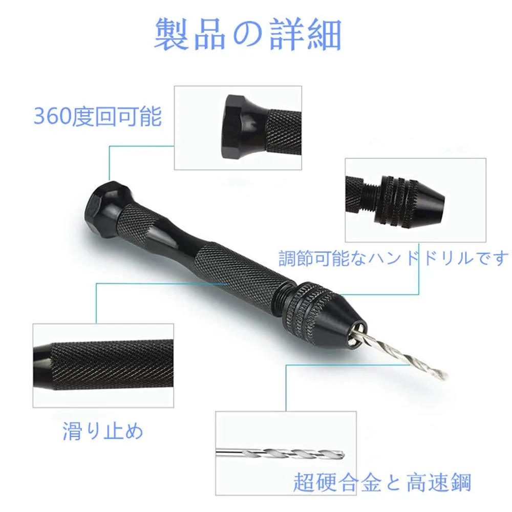 【高品質と耐久性】これは調節可能なハンドドリルです。高精度なピンバイスはブラックアルミニウム合金、ハンドドリルビットセットはアルミニウム合金、高速度鋼で、長時間使用のために作られて、防錆性と耐久性もお持ち、耐久性を強くなります。