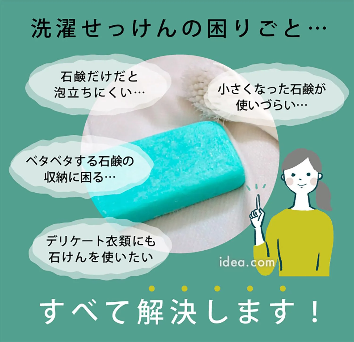 大ヒット!シリーズ累計42万個(※2023.11~2025.10 出荷累計)泡立つせっけんケースシリーズ!に、ソフトローラーバージョンが新登場!やさしくしっかり泡立つ!これひとつで、汚れ落としからせっけん収納まで! せっけんケースのままコロコロ動かすだけ。 先端に柔らかい樹脂製のローラーが付いているので、①生地を痛めにくく、②しっかり泡立ち汚れ落としができる。③ケースのまま使えるから、手が滑らずしっかり洗える。④トレー付きなので、洗ったあとは、濡れたまま置いて収納できる。⑤ケース上部には通気口があるのでせっけんが乾きやすい。