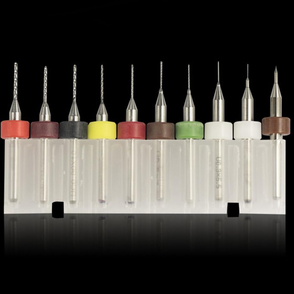 新品 サムコス 極細ドリルビット マイクロドリルビット 10本セット PCB 超硬 精密ドリルビット 装飾品 彫刻 プリント基板 真珠 穴あけ用 収納便利 収納ボックス付き (0.1-1mm)