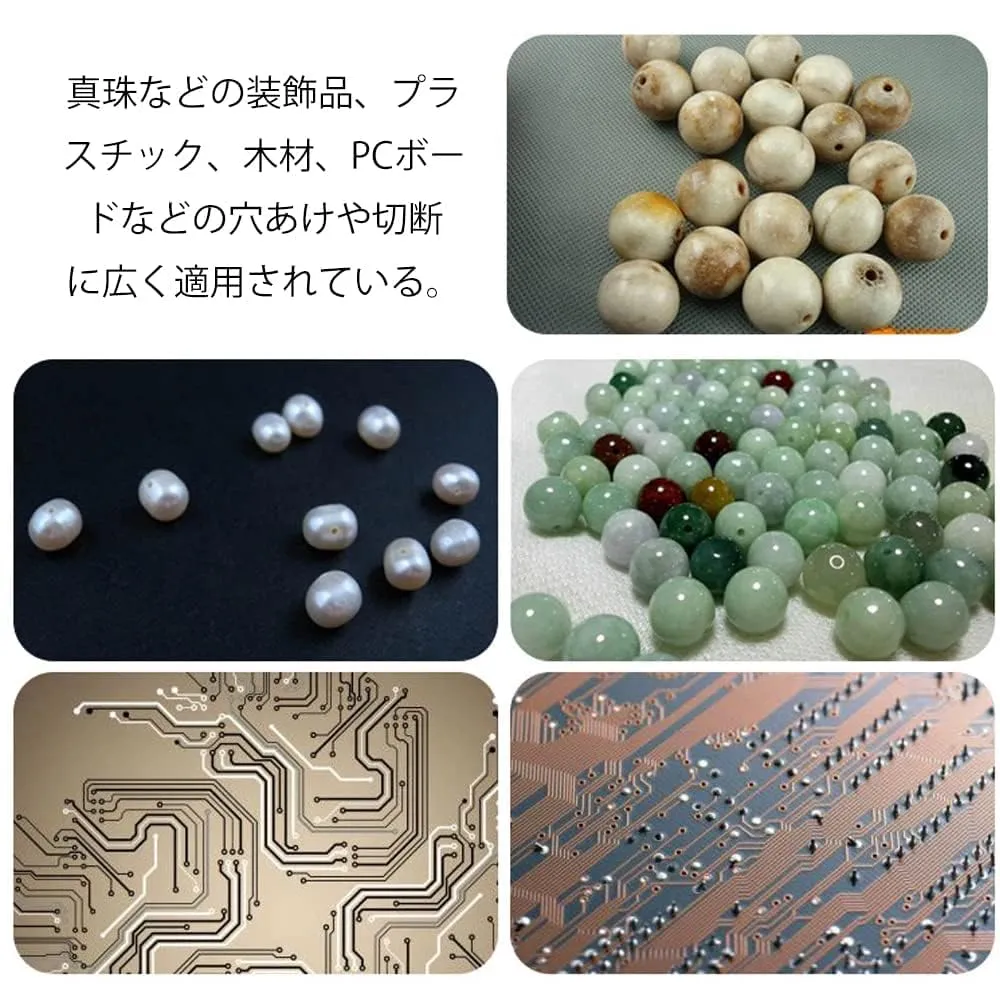 適用シーン:真珠などの装飾品、プラスチック、木材、PC板、PCBプリント配線板、模型とソフト金属などの微細ドリルに広く適用され、精密ドリル器具、PCBボール盤、彫刻機などに適用される。