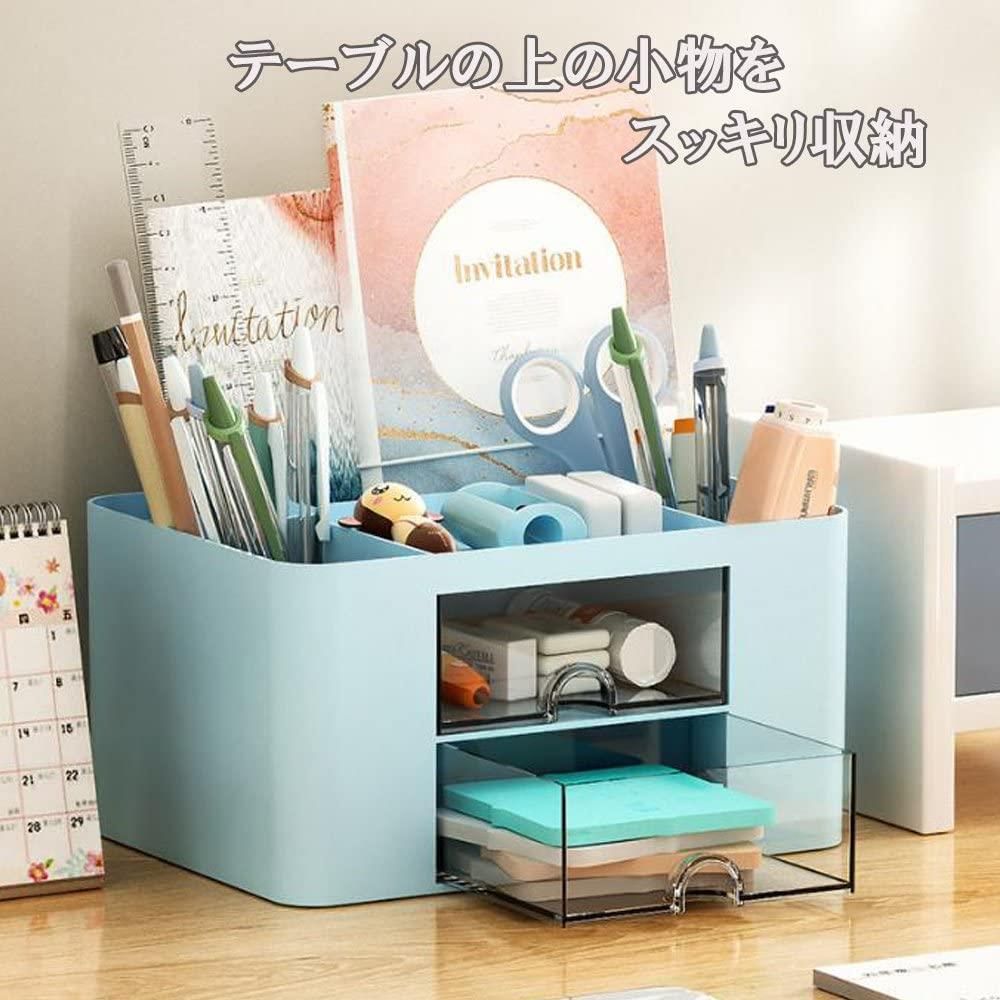 【便利な卓上収納】4つのポケットと2つの引き出しの収納ボックスですのでペン、鉛筆、定規、ホッチキス、ハサミ、消しゴム、メモ帳などテーブルやデスクの様々な文具、小物を整理整頓できます。 引出しが透明だから、中身が一目でわかるので引き出しの中を確認する際に引き出しを開ける必要はありません。 デスクオーガナイザーです。
