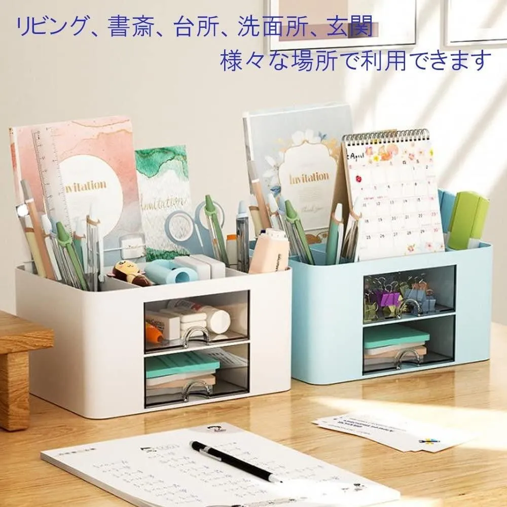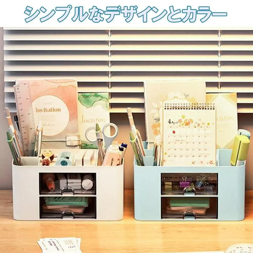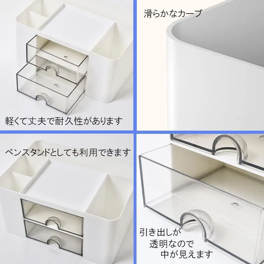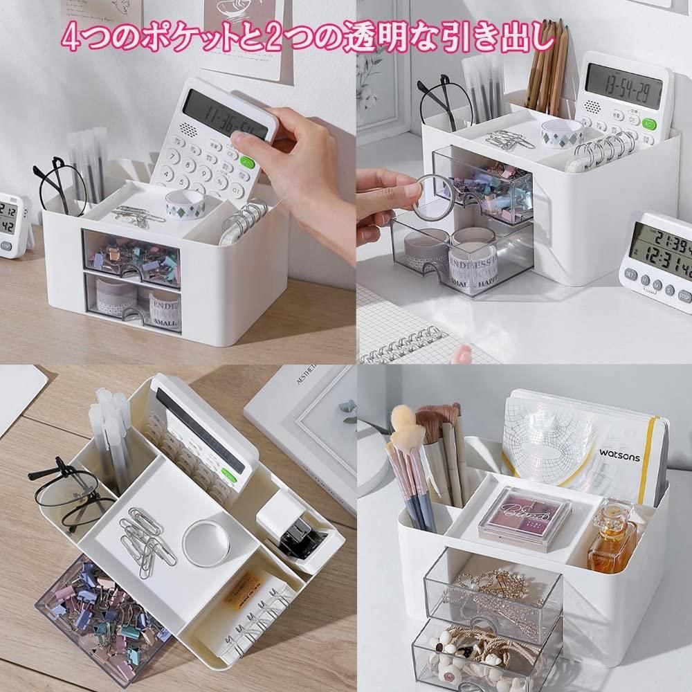 4格2引き出し 白 yuusaki 卓上収納 ペン立て 小物入れ ペンスタンド 文房具 収納 多機能 便利 デスクオーガナイザー デスク収納 (4格2引き出し 白)