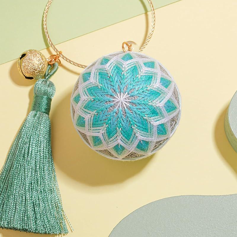 【新品】 Beadthoven 1セット入り てまり 手鞠 DIYクラフト材料キット 刺繍ギフト 針仕事 手作り ハンドメイド キーホルダー バッグ飾り インテリア ハンキング用 手芸用品 (直径約52mm シーグリーン) 0