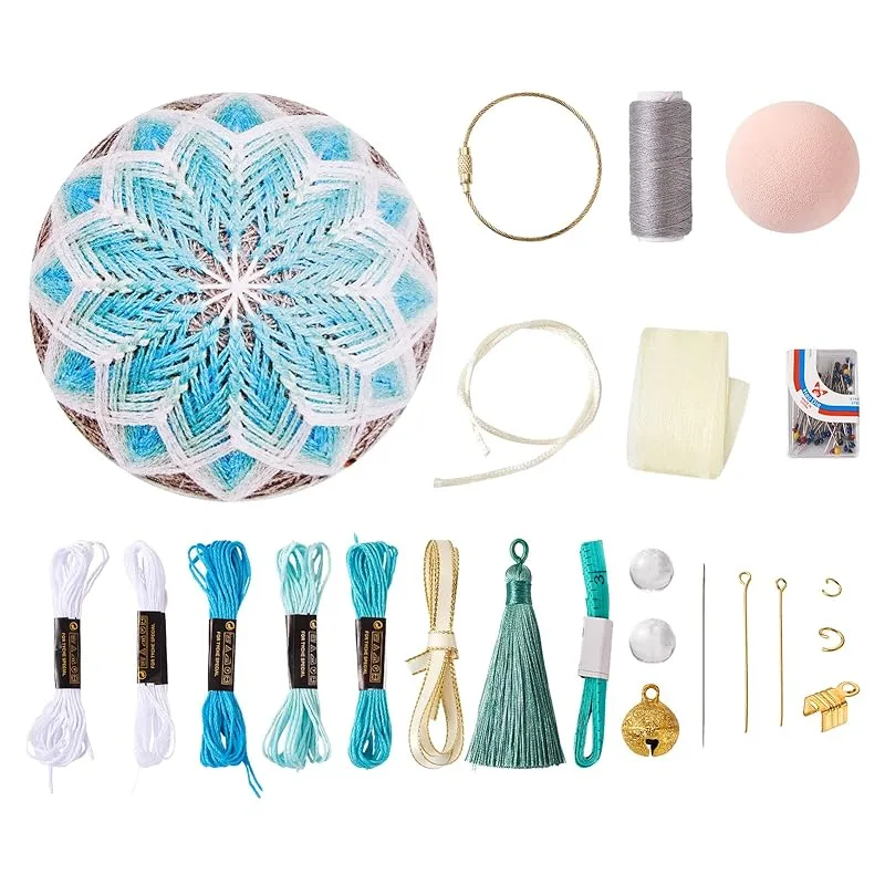 【お得なセット】:刺繍中使うものが全部セットになっており、初心者でも綺麗な手まりが仕上げできます。