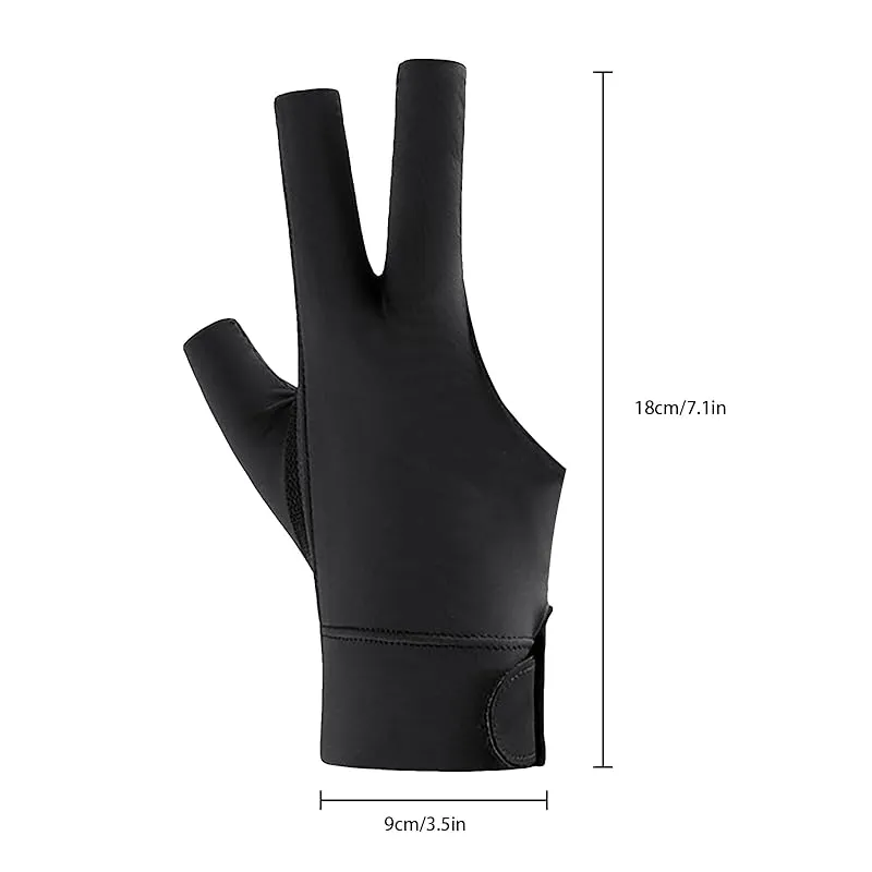 【3本指 ビリヤードグローブ】オープンフィンガー設計により、クラブグリップを強化し、ティーショットでの安定したパフォーマンスを実現。快適なフィット感とキューの滑らかな滑りを提供するため、手にタルクを使用する必要はありません。手首を厚くしたデザインにより、ショットのサポートと安定性がさらに高まります。