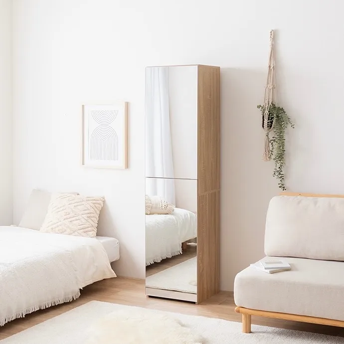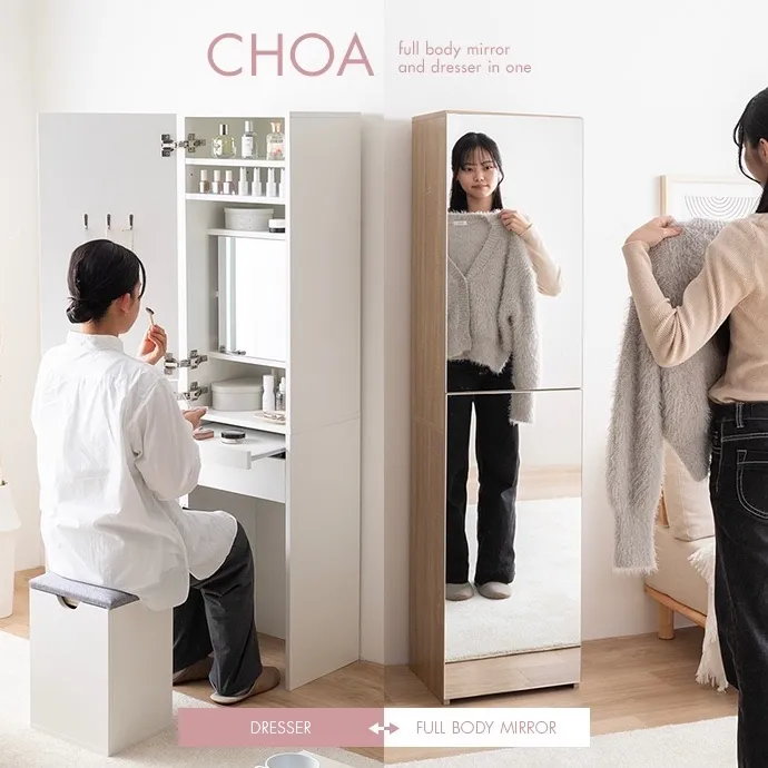 ミラーも収納もドレッサーも、省スペースで叶える『Choa(チョア)』姿見ドレッサー。