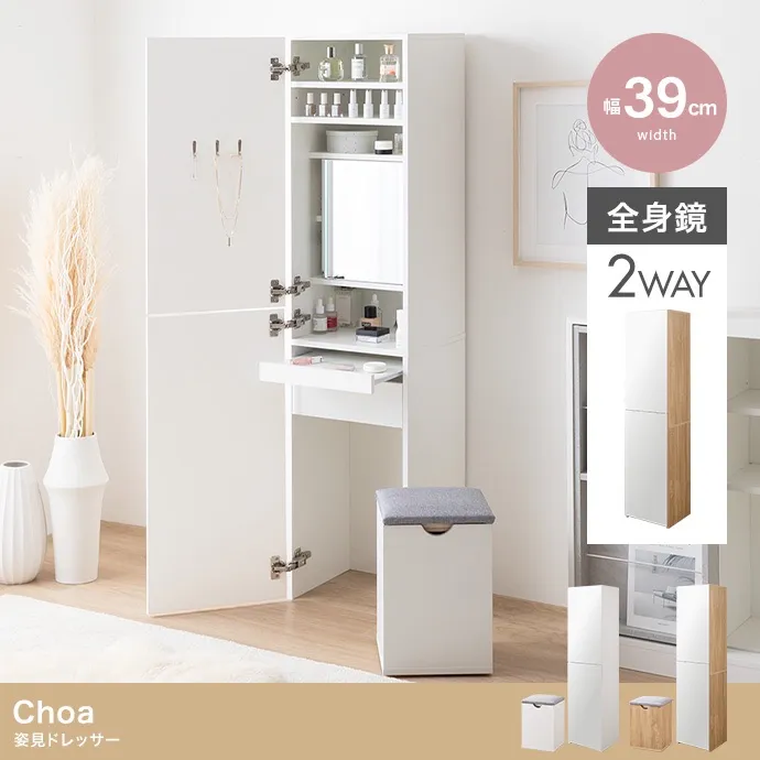 【幅39cm】Choa 姿見ドレッサー 収納 ミラー コード穴