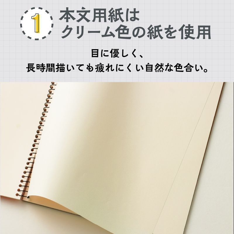 ■完成サイズ:用紙サイズ:297×210mm 上質紙60gの本文用紙を使用した、使いやすさにこだわったA4サイズのクロッキー帳です。自然な色合いの紙質で、長時間描いても目が疲れにくい設計です。本文は40枚。裏表紙には厚みのあるチップボール紙を採用しており、下敷きなしでも安定して描けるので、机がない場所でも快適に使用できます。ダブルリング製本により、ページをしっかり固定。めくりやすさと耐久性を両立し、ストレスなく使えます。表紙は3色展開で、用途や目的別に色分けして管理することも可能です。持ち運びしやすいA4サイズで、日常のスケッチからアイデアメモ、作品制作、プレゼンテーション用のラフ作成まで幅広く活躍します。丈夫な紙質とシンプルなデザインで、年齢や用途を問わず使いやすいクロッキー帳です。 ※お使いのモニター設定、お部屋の照明等により実際の商品と色味が異なる場合がございます。