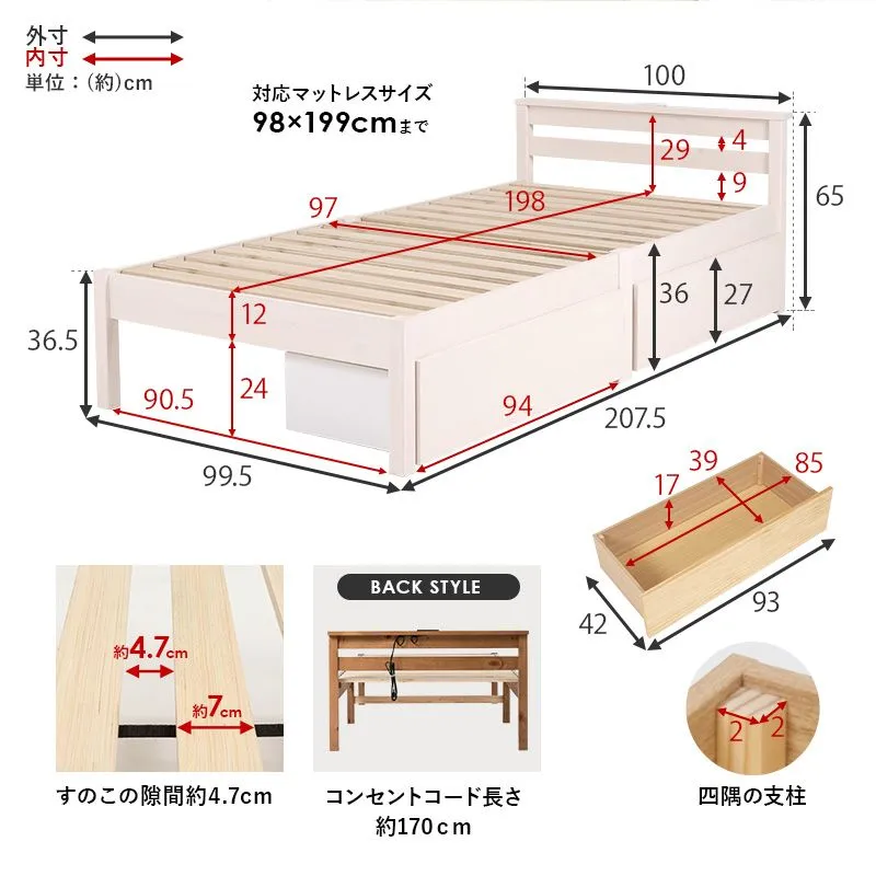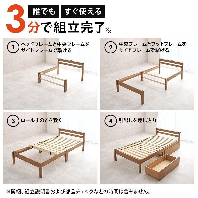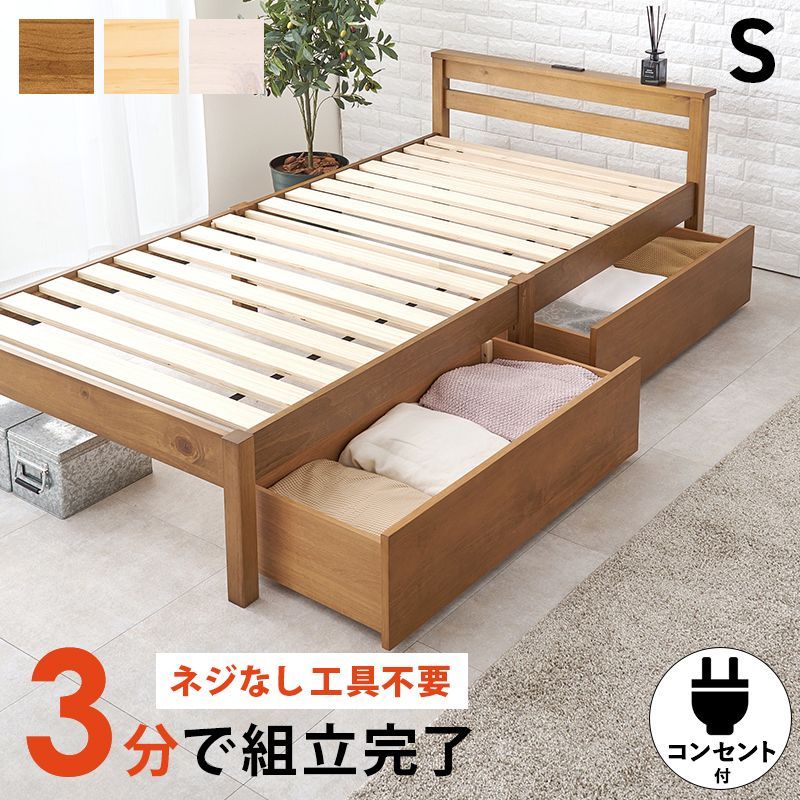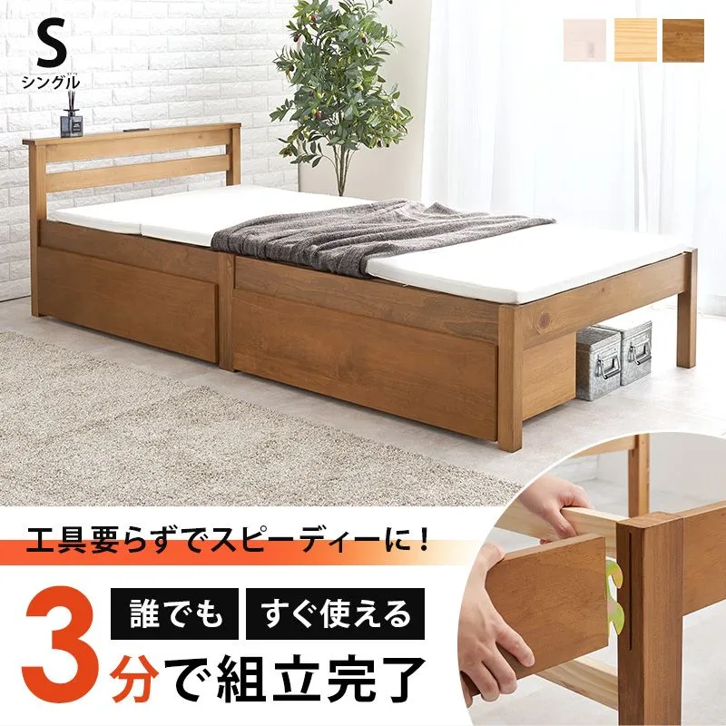 組立簡単 引出し付シングルベッド(ライトブラウン) MB-5150S-LBRHS