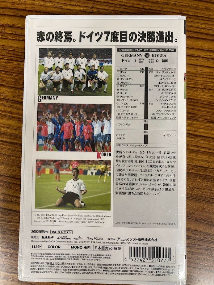 2002 FIFAワールドカップ オフィシャルビデオ 準決勝 ドイツ VS 韓国 ノーカット完全収録版 VHSビデオ(外の包装にちょっと汚れあり)
