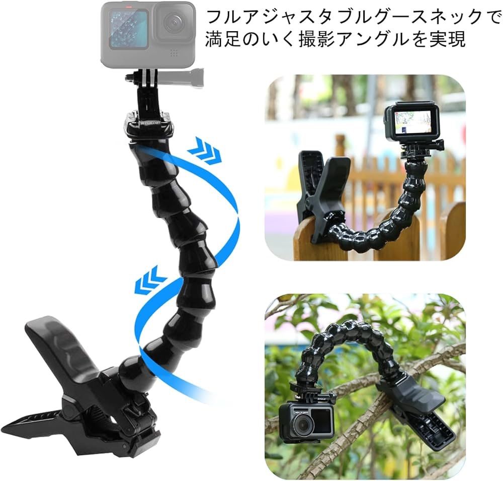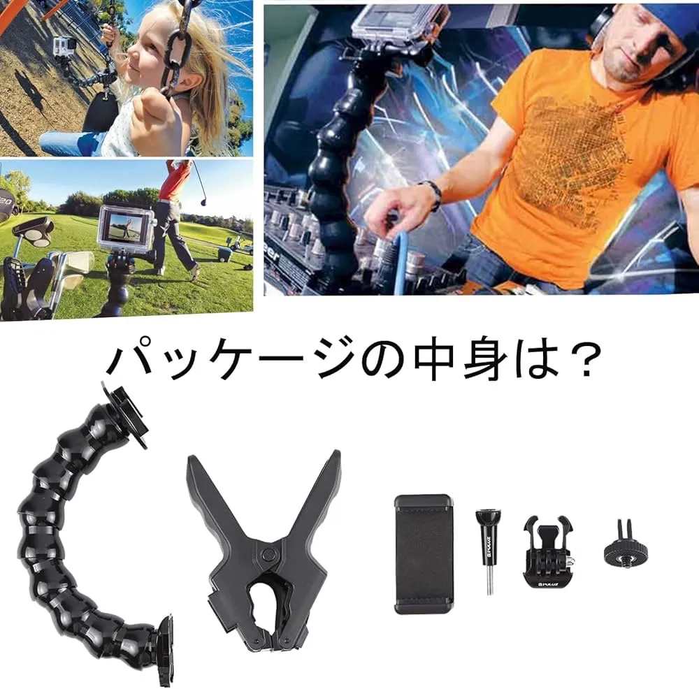 PULUZ ジョーズフレックス クランプマウント、アクションカメラクランプクイックリリースベースネック調節可能スポーツカメラアクセサリー電話クランプ付きGoProHero11/10/9/8/7/Insta 360/DJIアクション/アクションカム