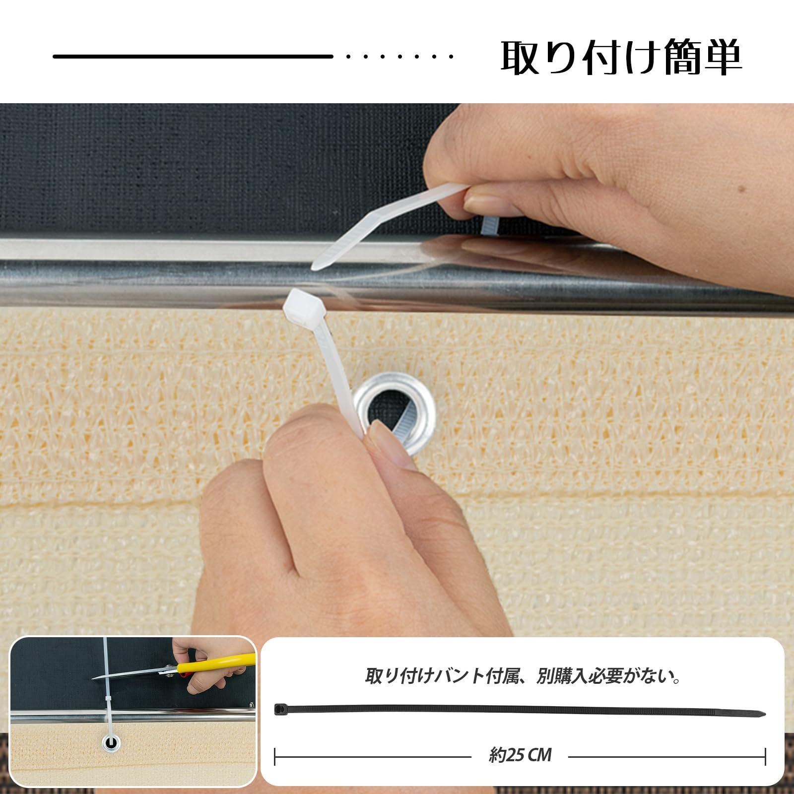 【高い利便性】紫外線に強い、色褪せや紫外線劣化に強い糸で織られた生地を使用、 重さは185gの生地で、目隠し効果と遮光率ももっと高くなります。また、取付用のバンドを付属しており、1人でも手軽に設置できます。