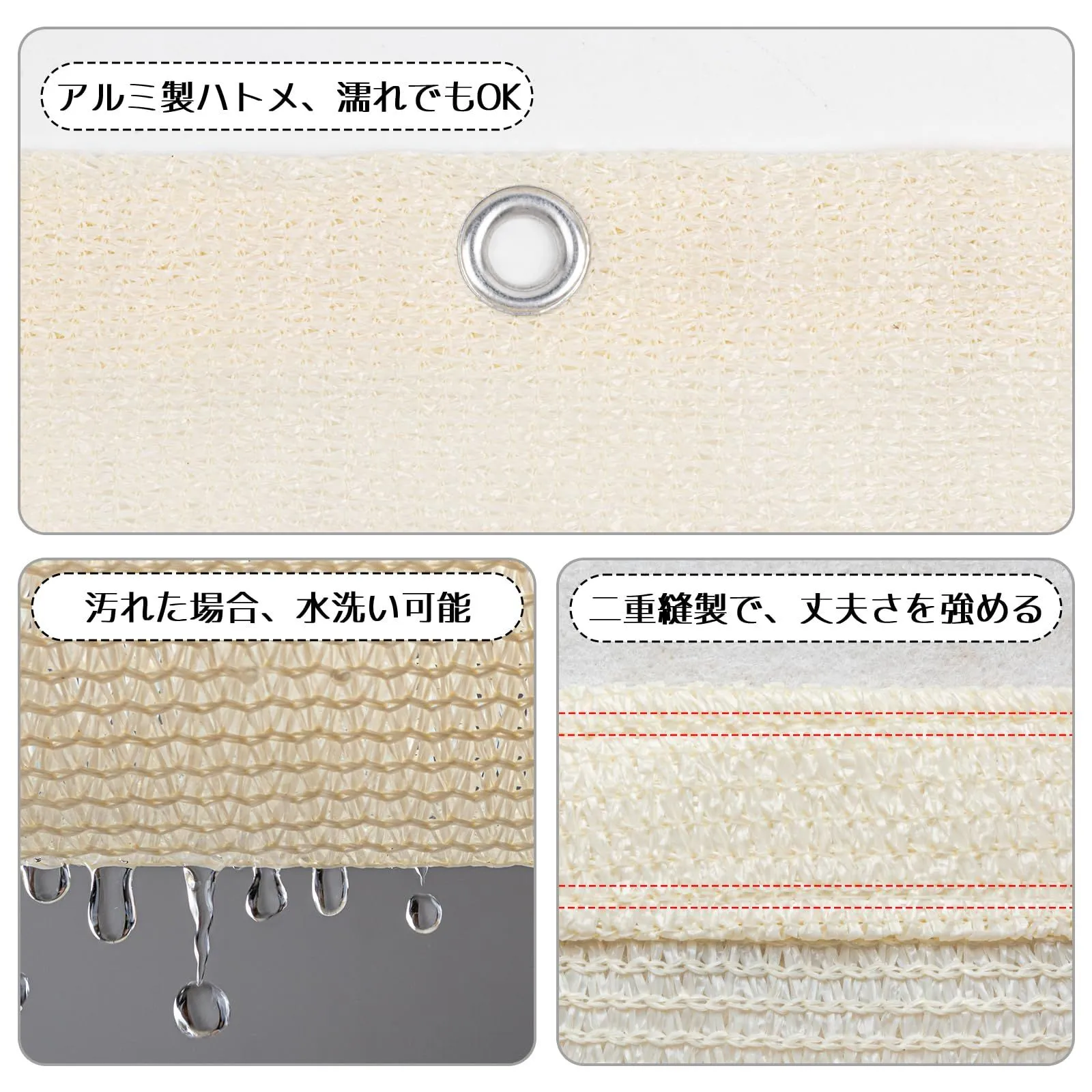 【高品質素材・高級感】 本バルコニーシェードは耐久性に優れた高密度ポリエチレンで、生地の収縮を抑える熱処理も加工も施しましたが、色褪せもしにくく、耐久性が高い製品です。また、手の込んだ縫製、アルミ製のハトメ等に高級感が感じられます。