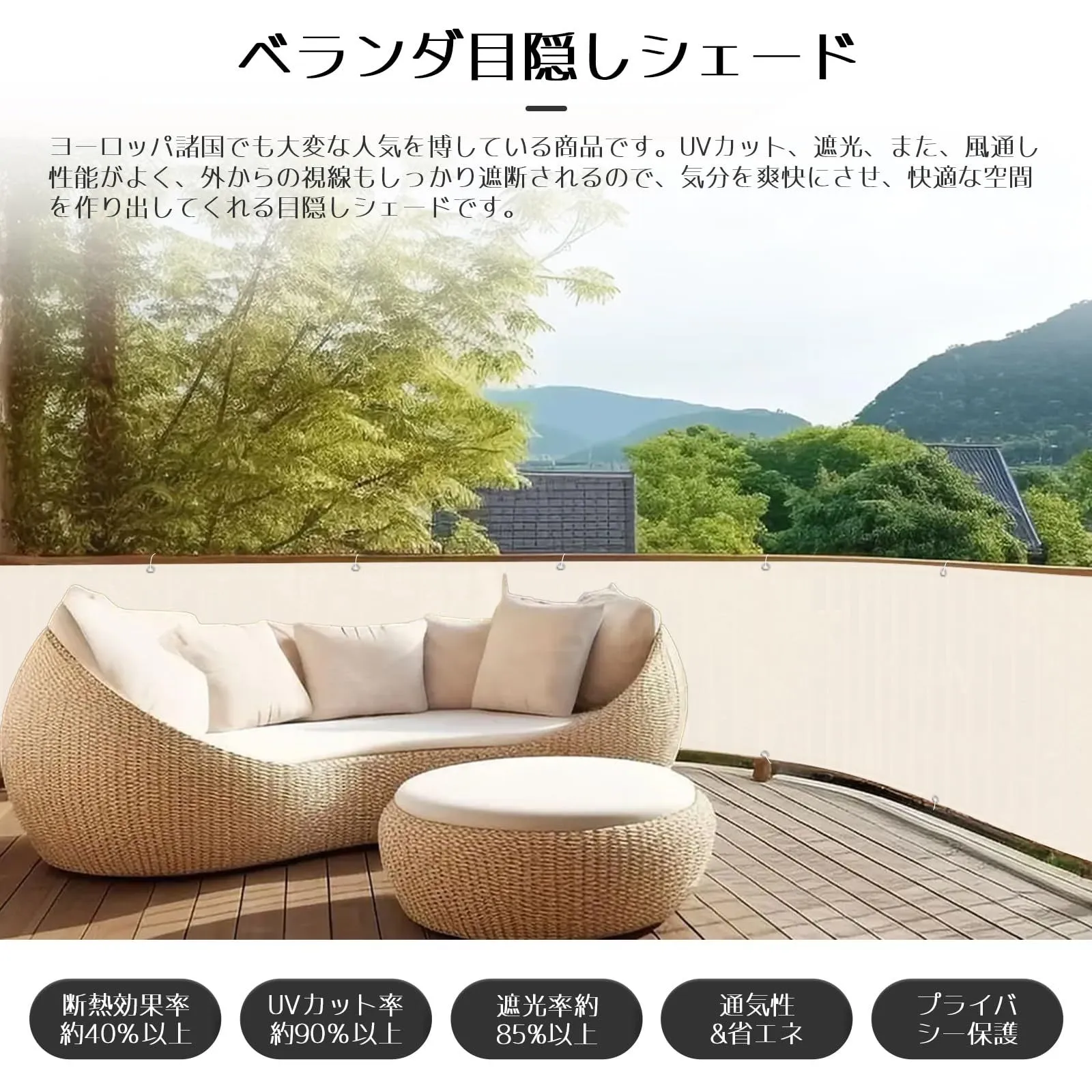 【目隠しと日除けの両立】ヨーロッパ諸国でも大変な人気を博している商品です。UVカット率約90%、遮光率約85%に達し、また、風通し性能がよく、外からの視線もしっかり遮断されるので、気分を爽快にさせ、快適な空間を作り出してくれる目隠しシェードです。