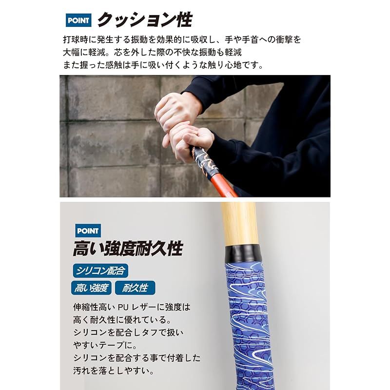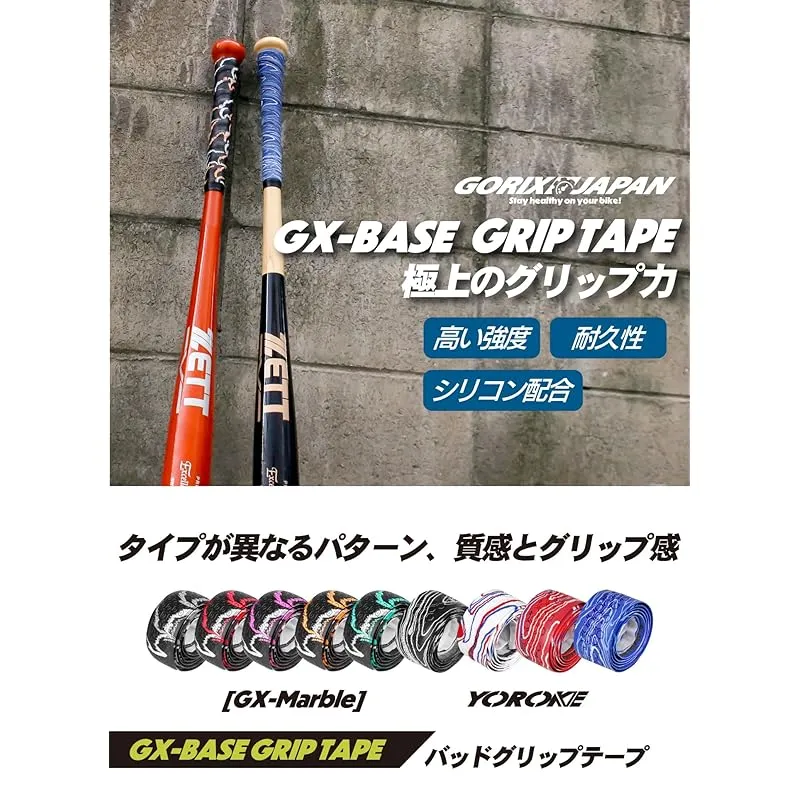 【商品説明】 自転車のバーテープやグリップなど自転車で培ってきたノウハウを生かしグリップに集結。 「GORIX」の野球バット用グリップテープは、快適なバッティングをサポートするアイテムです。 表面には滑り止めパターンを採用し、ウェットな状況でも高いグリップ力を発揮。汗や湿気で滑る心配を軽減します。さらに、クッション性に優れ、打球時の振動を効果的に吸収することで、手や手首への負担を軽減。 長時間の使用でも疲れにくい設計です。素材にはシリコンとPUレザーを使用し、高い耐久性と強度を実現。 木製バッドから金属バッドまで、素手での素振りや練習に最適なバッド用グリップテープです。