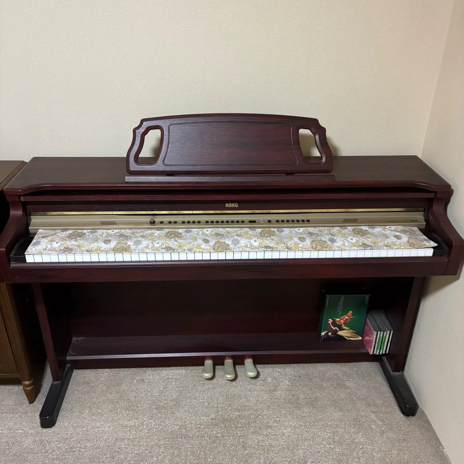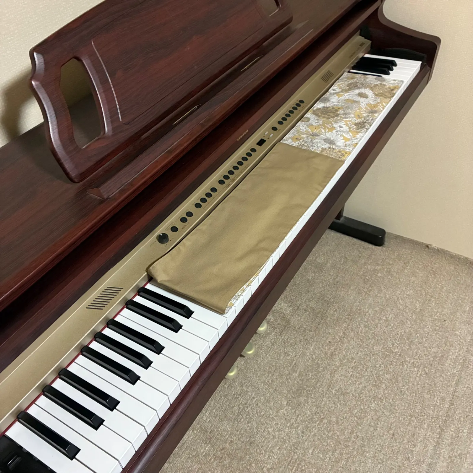 ~落ち着いたベージュに白いお花がお上品な鍵盤カバー~