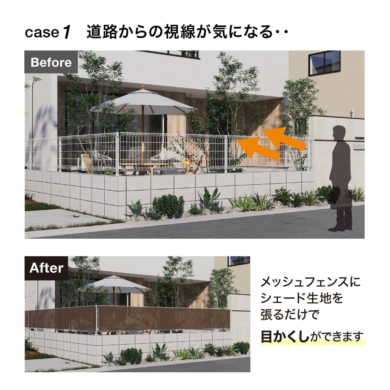 メッシュフェンス目かくしシェードの生地の特長。