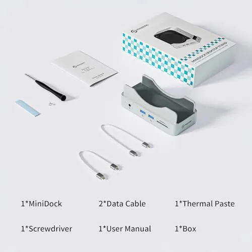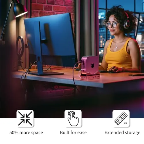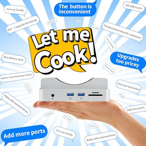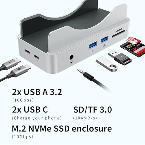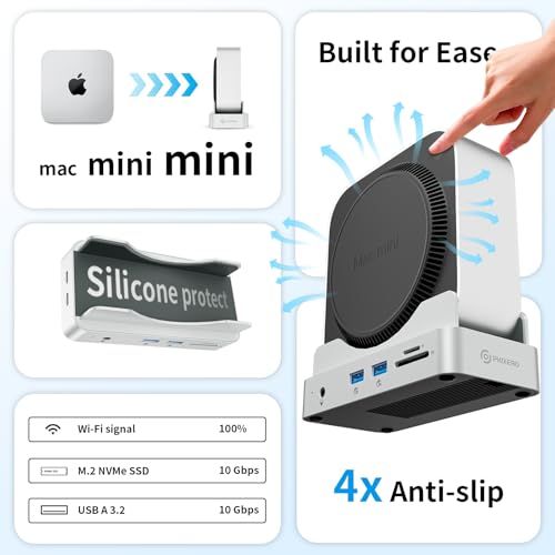 Phixero Mac Mini M4 ハブ & スタンド NVMe SSD エンクロージャー搭載|M4 Mac Mini ドック 最大10Gbps USB-A x2・USB-Aデータポート・SDカードリーダー対応ma