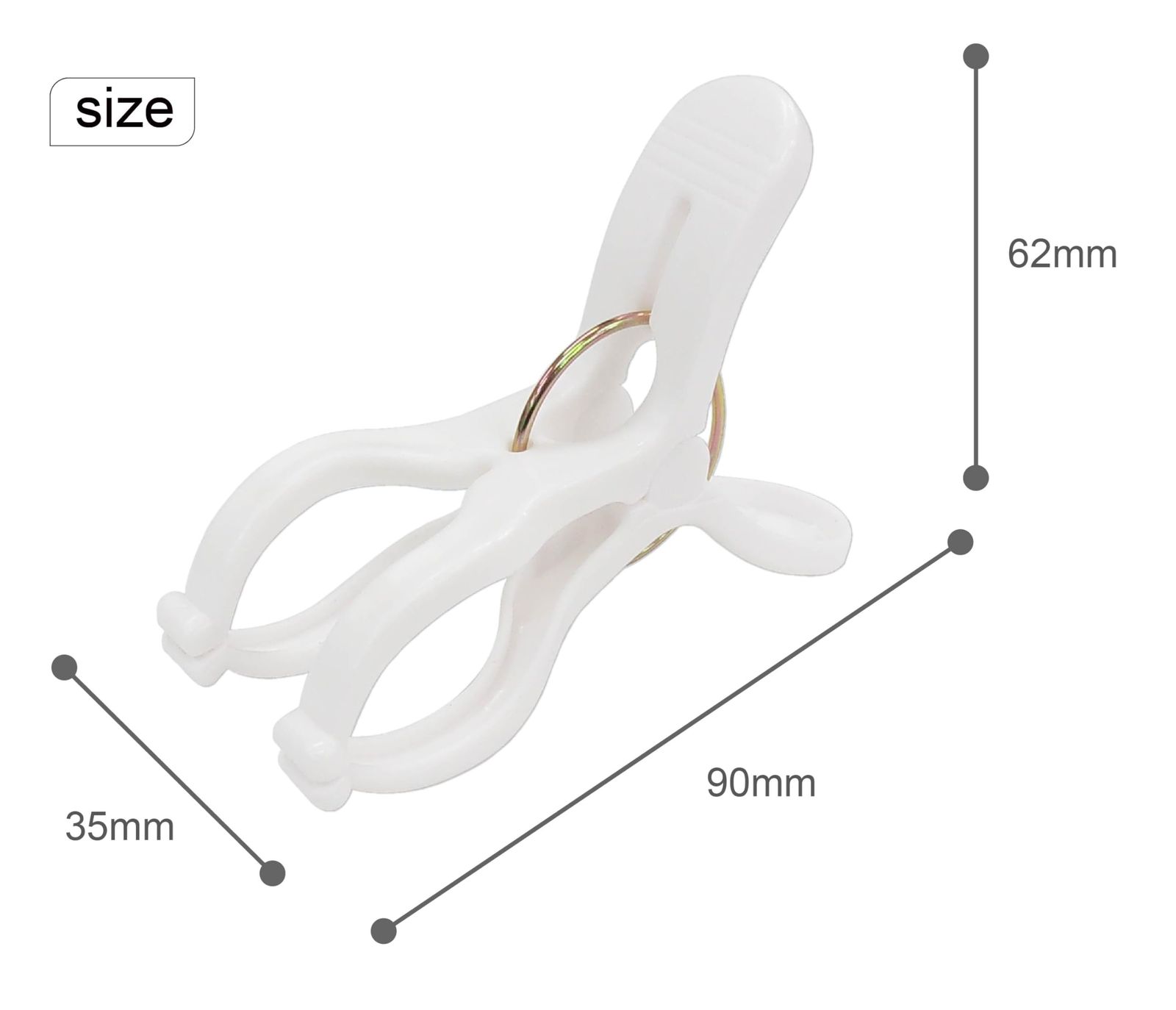 【ご注意】 ・本来の用途以外には使用しないでください。 ・手や指をはさまないようにご注意ください。 ・洗濯物の材質等によっては、はさみ跡が残る場合があります。 ・洗濯ばさみの先端で洗濯物を引っ掛けることがありますのでご注意ください。 ・洗濯物を直接引っぱってはずさないでください。本品や洗濯物が破損することがあります。 ・強風により洗濯物がズレることがありますので、風の強い日に使用する際はご注意ください。 ・使用後は室内で保管してください。長期間直射日光にさらすと劣化が進み破損しやすくなります ・色の変化やひび割れが出始めた場合は使用を中止してください。 ・火のそばや高温になる場所には置かないでください。 ・廃棄時は各自治体の定める方法に従って処理してください。 商品サイズ:縦9cm×横6.2cm×高さ3.5cm 材質:(本体)ポリプロピレン、(バネ)鋼 カラー:ホワイト 生産国:中国 最後まで確認ありがとうございました。 注意点 ・配送会社の指定はできかねます。 ・営業所止めは受けておりません ・ご注文後のお問い合わせはメッセージよりお願い申し上げます。