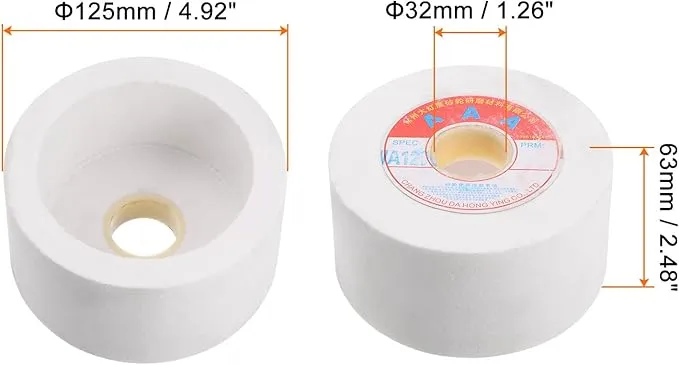 【商品説明】 ・画像5枚目が実際の内容全てです。 ※箱なし※パッケージなし※ ・説明書なし ・サイズ:5インチ(粒度:120グリット、外径:125mm / 4.92インチ、内径:32mm / 1.26インチ、高さ:63mm / 2.48インチ。) ・素材 - コランダムは小さな粒子サイズ、耐衝撃性、均一な粒子を持っています。 ・用途 - 硬化鋼、高炭素鋼、合金鋼などの硬質および感熱性鋼の研削に適しています。 切削工具、歯車、糸、薄肉部品などの研削・成形に幅広く使用されています。 ・特徴 - 砥石は高精度、高効率、良好な粗さを備えており、研磨剤の消費量が少なく長寿命です。