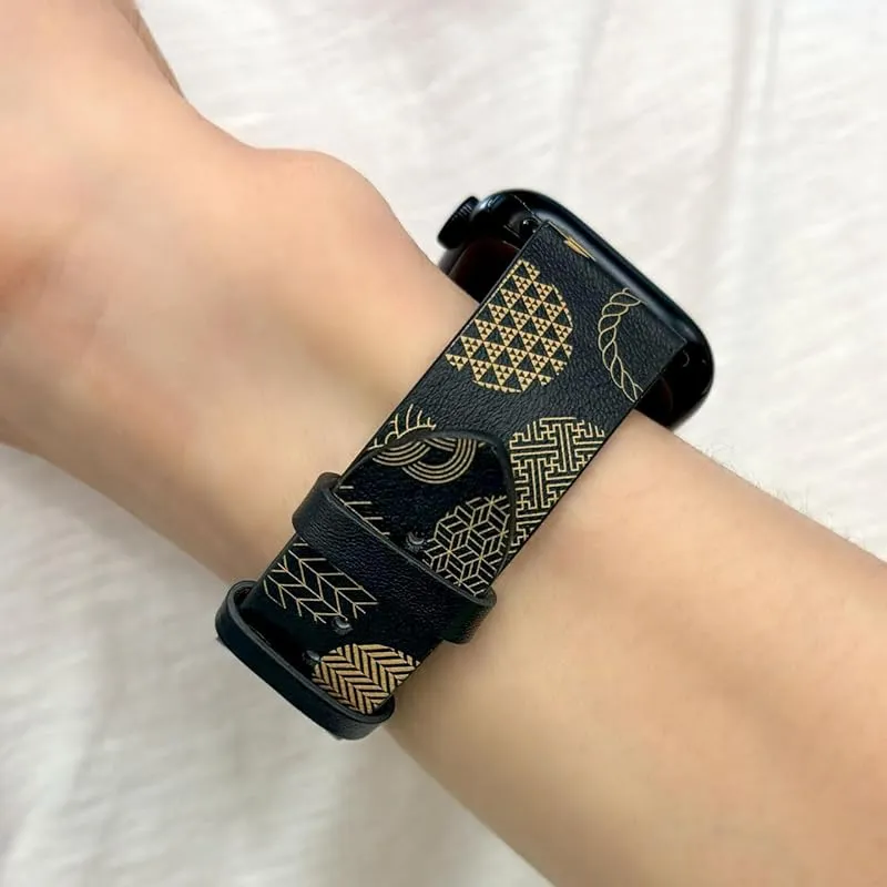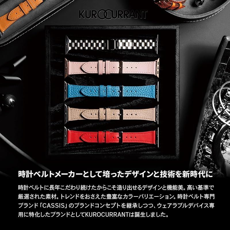 【新品】 compatible with Apple Watch アップルウォッチ用 バンド ベルト カーフ 牛革 日本伝統 文化 キモノ KIMONO カシス 42mm(series11/10)/41mm/40mm/38mm Series11/10/9/ 1