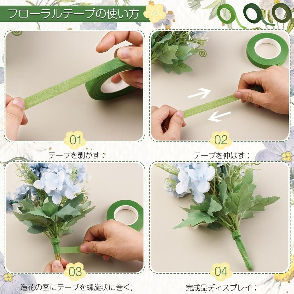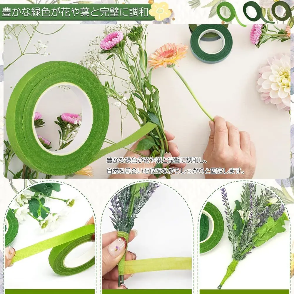 豊かな緑色が花や葉と完璧に調和し、自然な風合いを保ちながらしっかりと固定します。ブーケ、造花、ギフトラッピング、スクラップブックのデコレーション、フラワーDIYに最適です。様々なシーンで使用でき、ユニークな作品を作ることができます。
