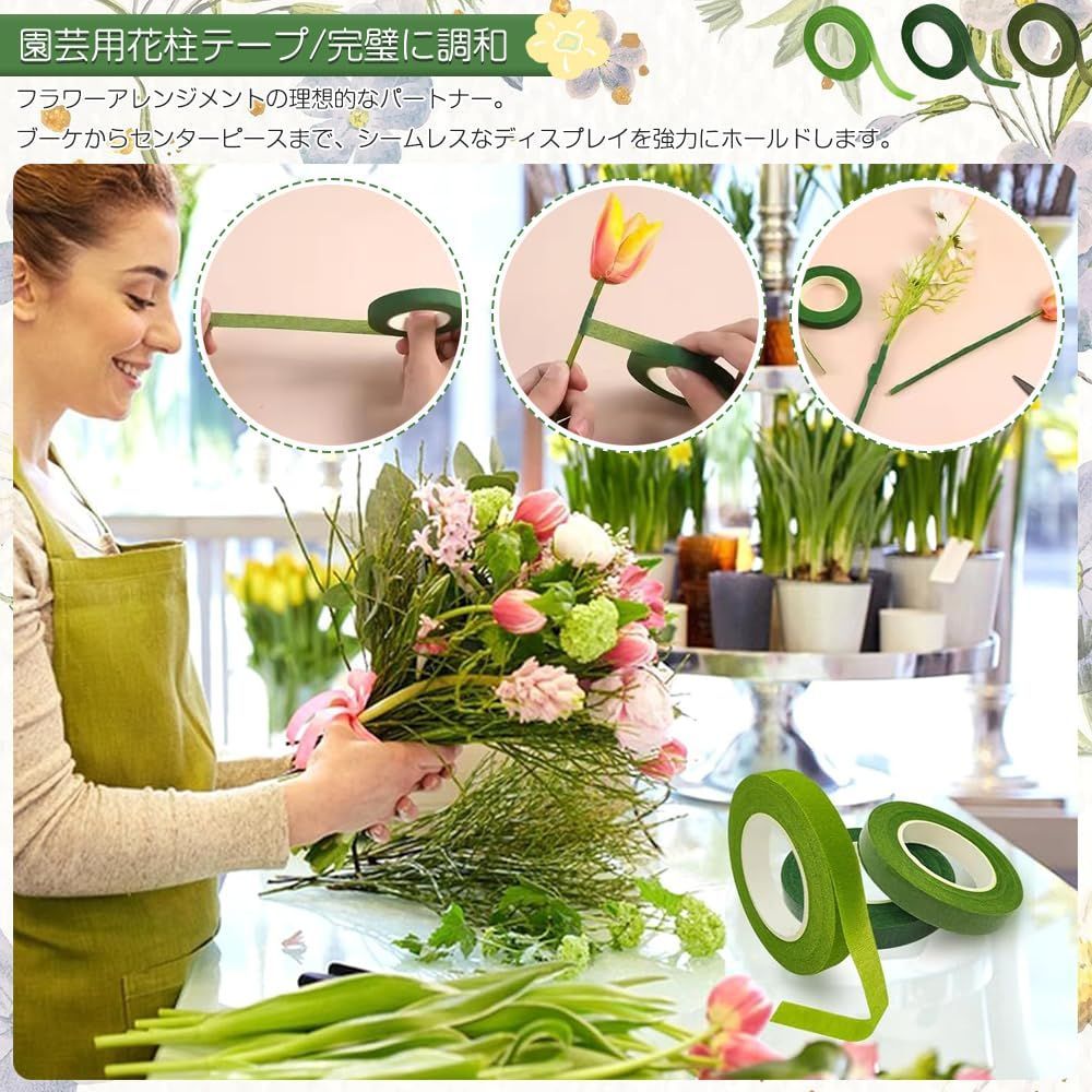【人気商品】造花テープ 6個セット 3色 花柄テープ フラワーテープ フローラルテープ DIY 花芸飾りセット グリーンテープ 花の接着剤 生け花ツール 手芸 材料 フラワーアレンジメントキット 園芸用花柱テープ 横幅1.2CM 全長約27M(グリーンカラー*