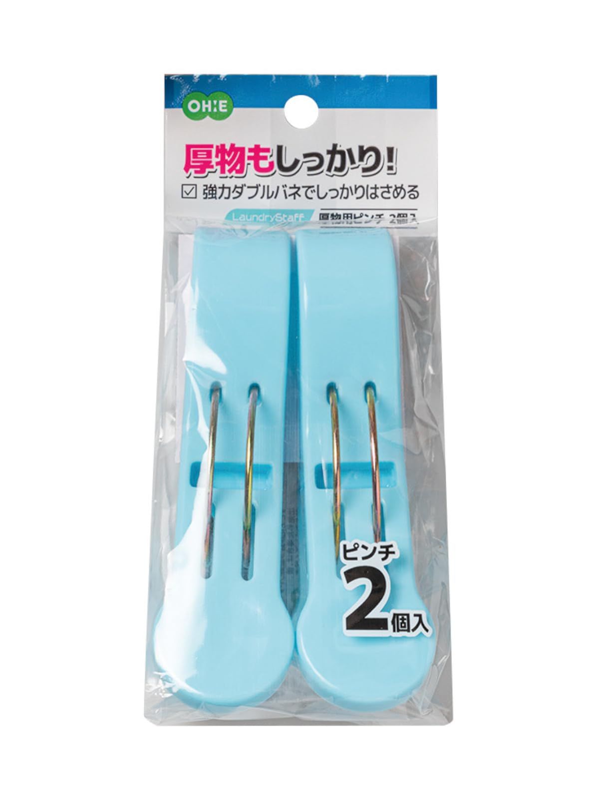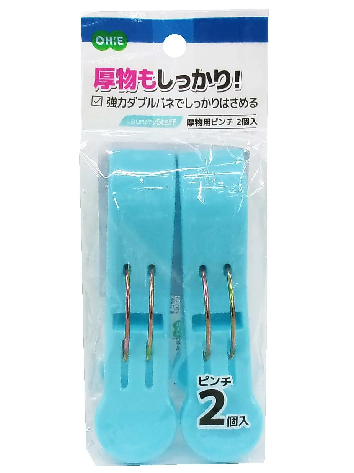 新品 オーエ 厚物用 洗濯ばさみ 縦12.5cm×横7.3cm×高さ3.5cm ブルー Laundry Staff 厚物もしっかり 強力ダブルバネでしっかりはさめる 2個入