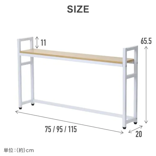 【サイズ・重量】幅75奥行20高さ65.5cm・3.5kg、幅95奥行20高さ65.5cm・4.2kg、幅115奥行20高さ65.5cm・4.8kg