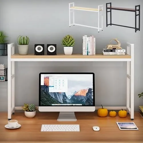 Bonarca デスク上収納ラック デスク上置き棚 1段 【選べる3サイズ/幅 75 95 115cm】 木製 おしゃれ 机上ラック 机上台 デスク上 机上 卓上 棚 収納 ラック 台 モニター pc 白 ホワイト ダークブラウン ブラウン 黒 ブラック