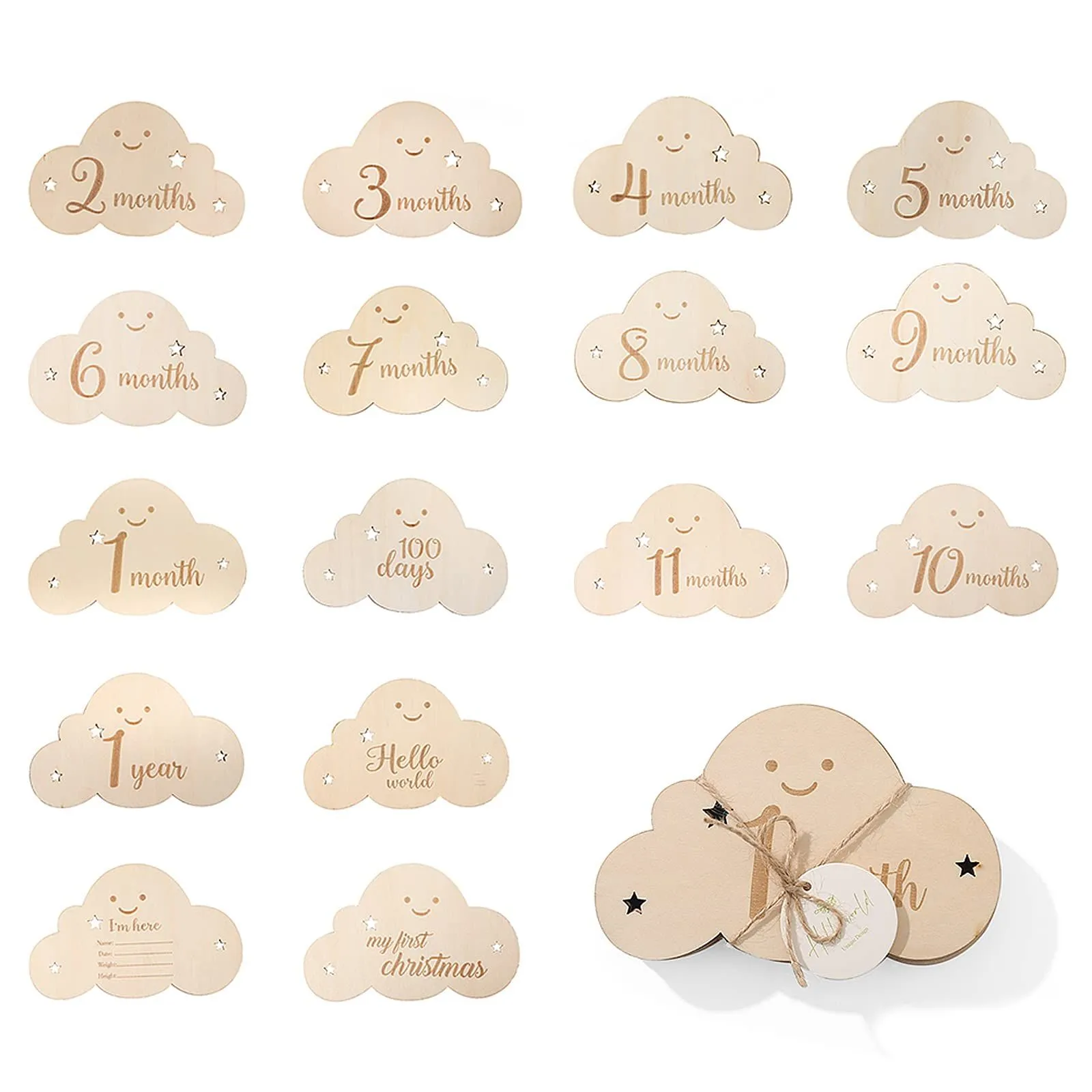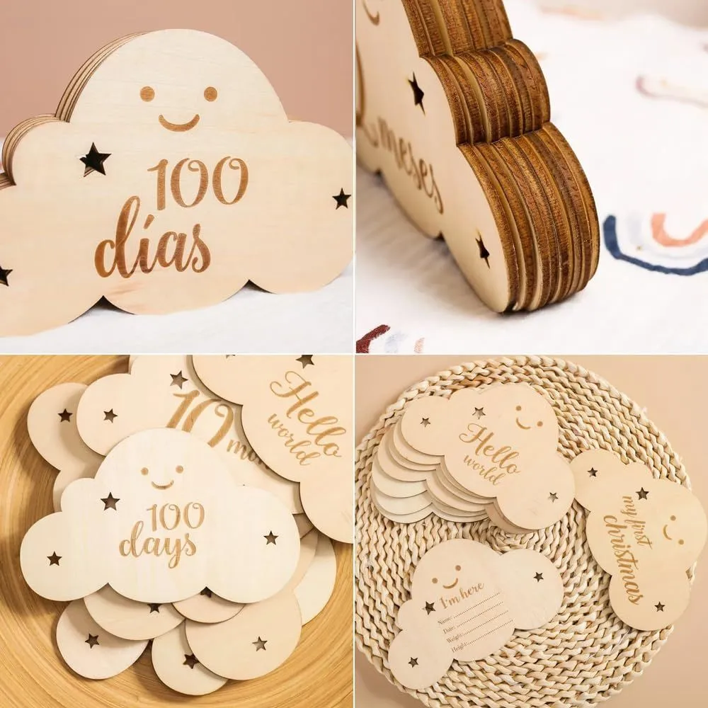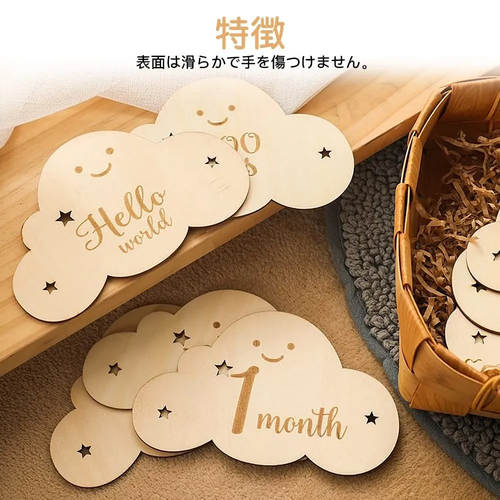 【特価セール】サムコス 雲形 ウッド 8枚セット 月齢カード 収納袋付き 写真道具 ニューボーンフォト 月齢フォト ベビーマンスリーカッド 記念日フォト 出産祝い 赤ちゃん 新生児 成長記録 撮影道具 (B)