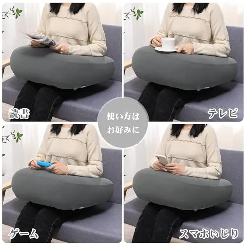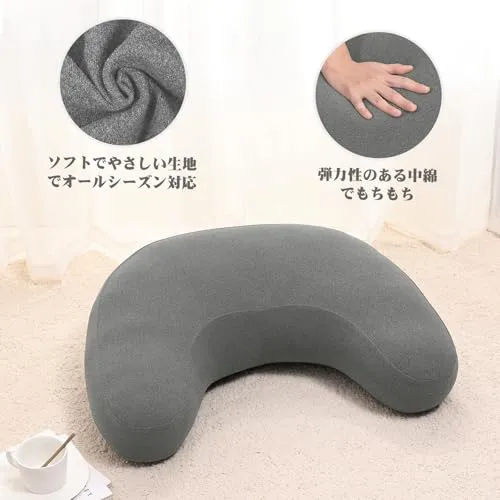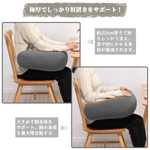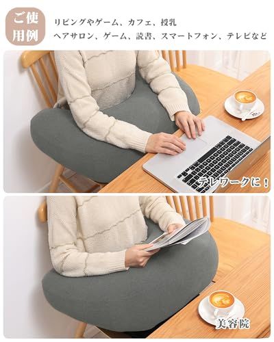 Baibu Home クッション 肘置き 膝上 クッション アームレスト ゲーム 厚め もちもち ふわふわ 背もたれ U字型 ヘアサロン 読書 授乳 テレビ 鑑賞 サポートクッション オールシーズン グレー