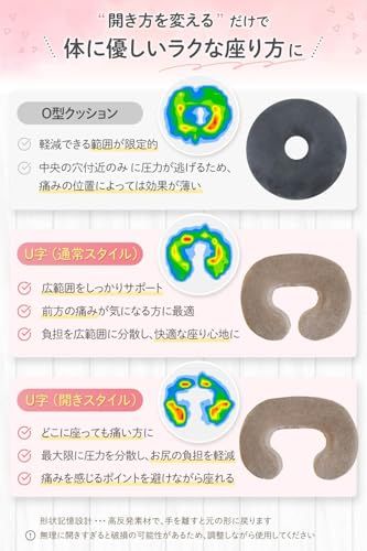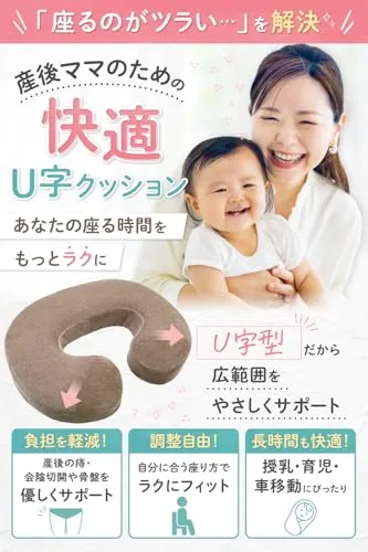 【初めてのひよこクラブ 掲載&現役助産師 推奨】 U字クッション ドーナツクッション 産後 痔 お尻 保護 高反発 マタニティ サポート 妊婦 ギフト (ワイドタイプ,ブラウン)