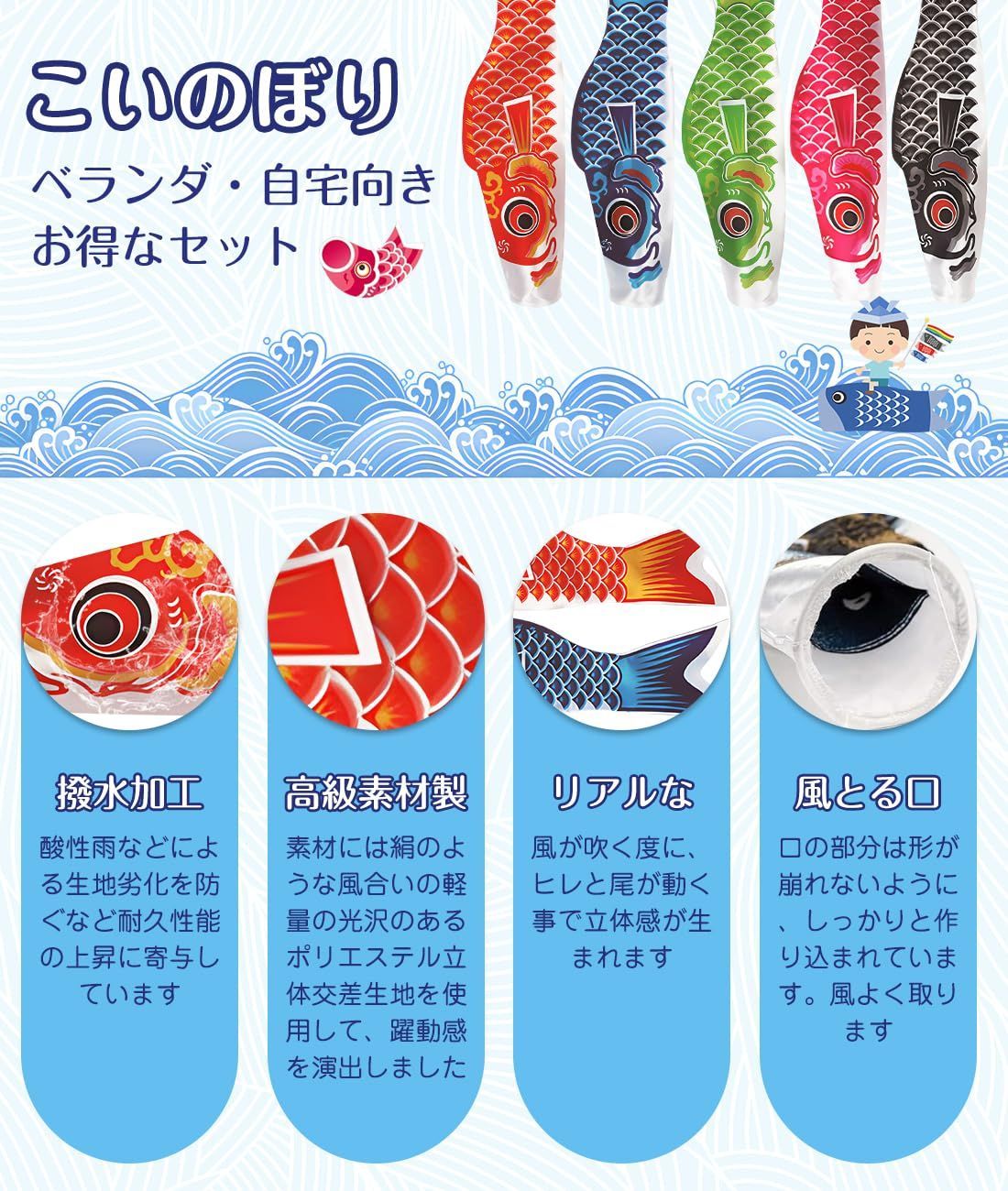 鯉のぼり こいのぼり ベランダ用 5色鯉のぼり 庭園 室内・屋外 子供の日 初節句お祝い 端午の節句 出産祝 各種贈答 御祝 飾り ベランダ用 こどもの日 ギフト プレゼント 五色セット (五色セット55cm)